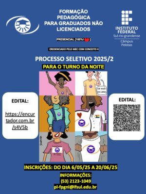 O Programa de Educação Tutorial (PET) Fronteiras: Saberes e Práticas Populares, vinculado à Universidade Federal de Pelotas (UFPEL), está com edital aberto para seleção de novos(as) bolsistas e voluntários(as). O grupo atua de forma interdisciplinar, buscando aproximar a universidade dos saberes populares e fortalecer o diálogo entre ensino, pesquisa e extensão a partir de práticas educativas emancipatórias. O edital completo pode ser acessado neste link: https://wp.ufpel.edu.br/petfronteiras/2025/10/21/pet-fronteiras-praticas-e-saberes-populares-abre-selecao-para-bolsistas/?fbclid=PAT01DUANk4AJleHRuA2FlbQIxMAABp9CwfTJEKd9bt7yF5cIFUtcQ9qsIlwLfVulgTbRnZoqQAVNAyopEVL4LdgZC_aem_sqFP9-XPTbAyIoriBE__aw