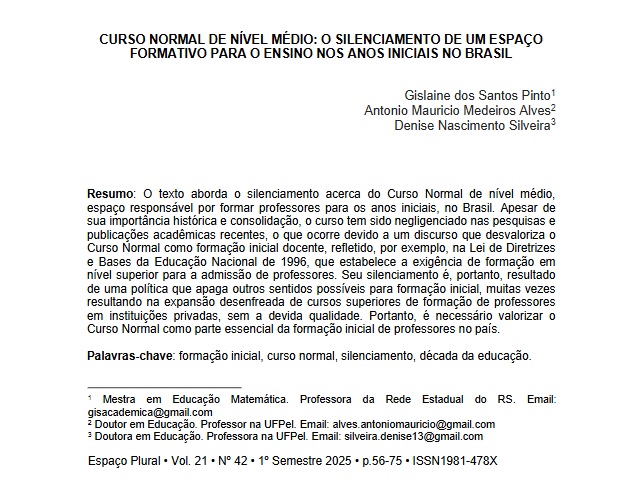 CURSO NORMAL DE NÍVEL MÉDIO: O SILENCIAMENTO DE UM ESPAÇO FORMATIVO PARA O ENSINO NOS ANOS INICIAIS NO BRASIL