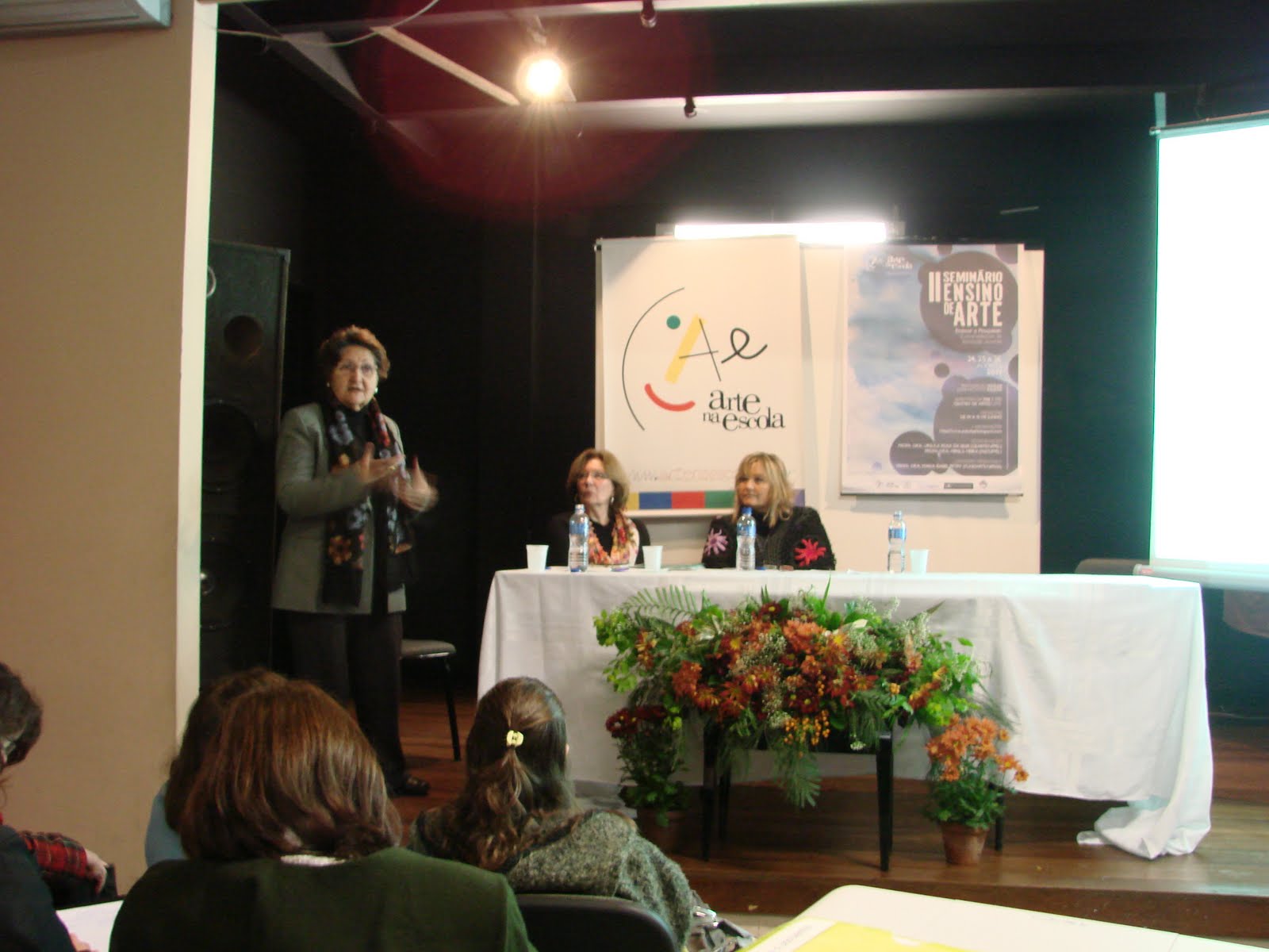 Teve início nesta quarta-feira dia 24 o II Seminário Ensino de Arte – Ensinar e Pesquisar: a reversibilidade da formação docente. Com a coordenação da Profa. Dra. Mirela Meira a mesa de abertura contou com as professoras: Dra. Marly Meira(FRGS), Dra. Isabel Petry Kehrwald (Fundarte) e Prof. Dr. Lauer Alves Nunes (Diretor Centr de Artes/UFPel) – Tema: Formação Docente, Pesquisa e Práticas criadoras em arte-educação no cotidiano escolar. Após lançamento de livros: Arte na Escola Pólos UFPel, FUNDARTE/Arte, Educação e Afeto (Marly Meira).