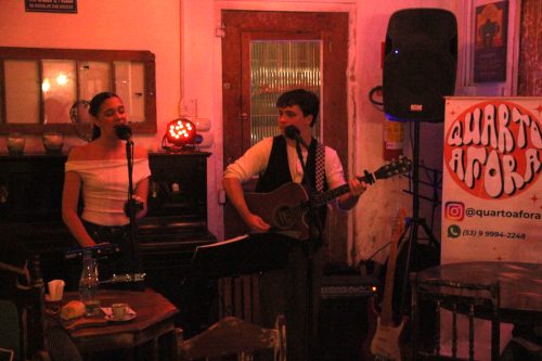 A banda pelotense “Quarto Afora” é integrada pelo jovem casal Mateus Kempfer – músico de 20 anos – e por Ana Luísa Nunes, com 17 anos, artista e estudante do IFSul (Instituto Federal de Educação, Ciência e Tecnologia Sul-rio-grandense). Eles decidiram fazer seu próprio duo, com o intuito de levar sua arte, individualidades e gostos musicais de dentro das suas casas para a comunidade. A dupla começou a montar seu conceito, repertório e identidade entre dezembro de 2024 e janeiro de 2025, para apresentar seu primeiro show ainda no mês de janeiro deste ano. Além da sua dedicação, o apoio de familiares e amigos tem sido fundamental. Seu empenho e coragem em enfrentar os públicos em apresentações leva a uma reflexão sobre o contexto cultural de Pelotas e a as condições locais para o desenvolvimento dos trabalhos artísticos.