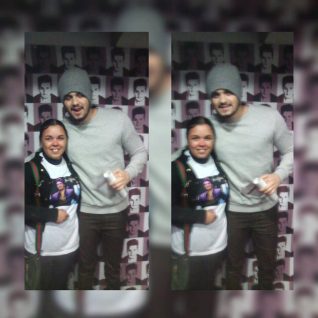 Karina se empolga ao lembrar os shows do cantor, mesmo com a dificuldade em posicionar-se em meio à multidão. “No primeiro que assisti, bem dizer não vi nada, pois fui na pista e tive que ficar em cima de umas caixa de som. No segundo, vi pouco também, mas eu ainda tirei uma foto com ele no camarim, pois passei o dia no hotel e ganhei o ingresso da produção, isso foi demais”.