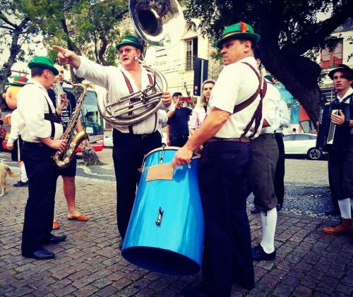 Músicos em trajes típicos no Centro de Pelotas participam da festa germânica Foto: Kímberlly Kappenberg
