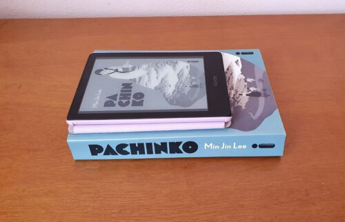 O livro “Pachinko”, da escritora Min Jin Lee, na sua versão física e digital