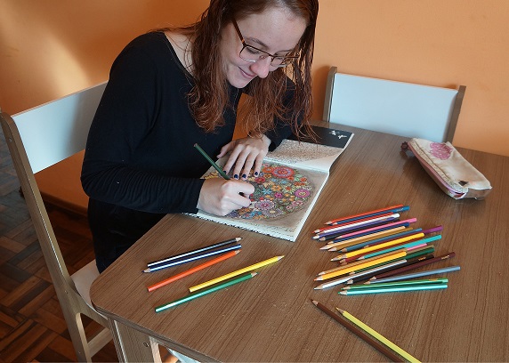 Já a mestranda em Ciência Política, Bruna Cavallari, adquiriu o livro com o intuito de diminuir a tensão, mas o resultado foi um pouco além. “Comprei o livro, pois queria experimentar alguma coisa para me distrair, relaxar a mente. Por um lado, como todo mundo está fazendo, fiquei curiosa para experimentar também e ver se realmente é antiestresse. Por outro lado, tenho alguns artistas plásticos na família, mas nunca me achei com habilidade para as artes, pensei que com o livro talvez pudesse me testar e reexperimentar estar em contato com a arte, pra, quem sabe, mais à frente, experimentar coisas novas”.