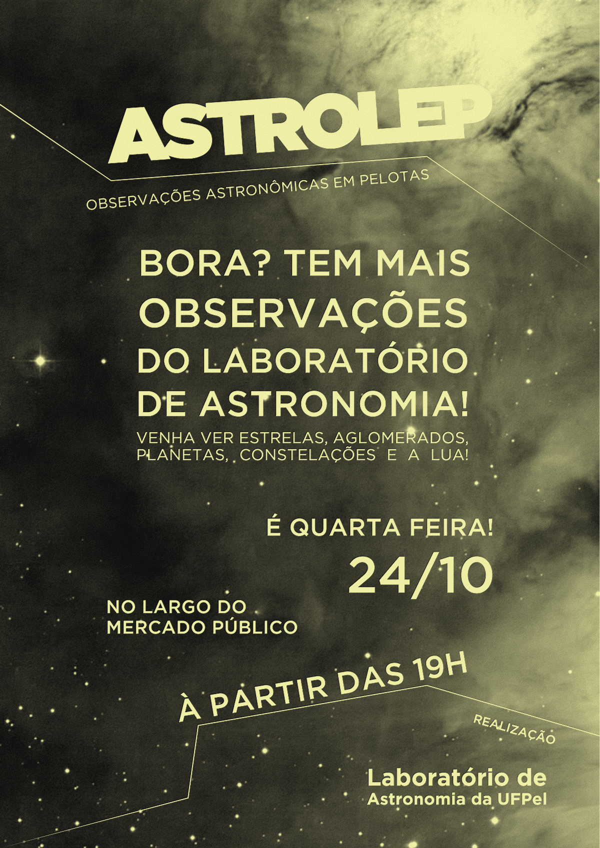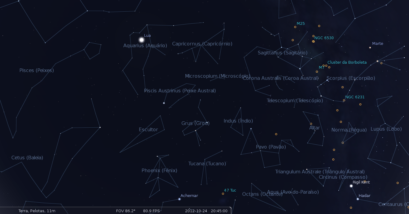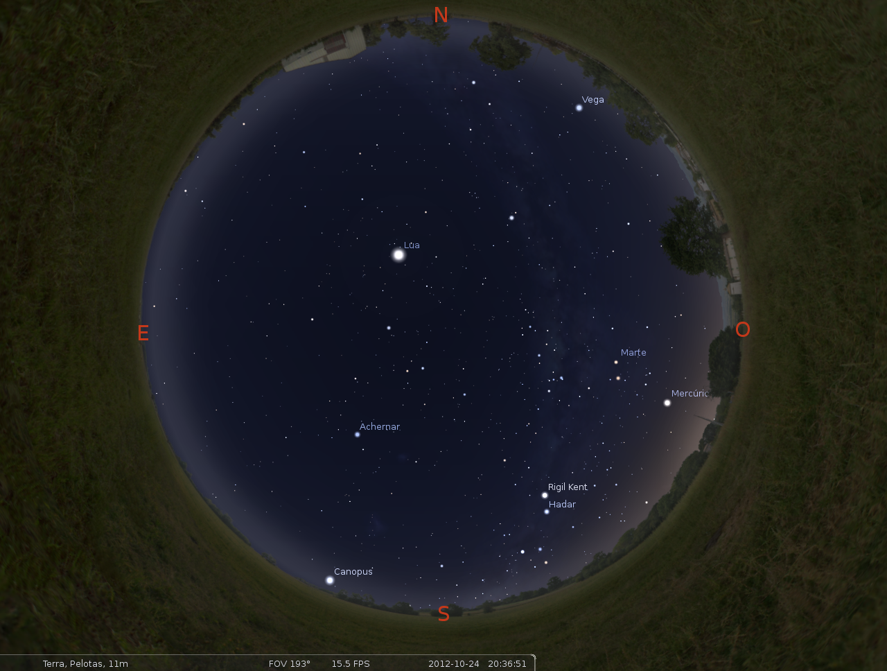 Obervação Astronômica Pública! É quarta-feira! Laboratório / 20/10/2012 Confira como vai estar o céu em Pelotas na data da observação: (Clique nas imagens para abrí-las em tamanho maior) Compartilhe: Clique para compartilhar no Facebook(abre em nova janela) Facebook Clique para compartilhar no X(abre em nova janela) 18+ Clique para enviar um link por e-mail para um amigo(abre em nova janela) E-mail