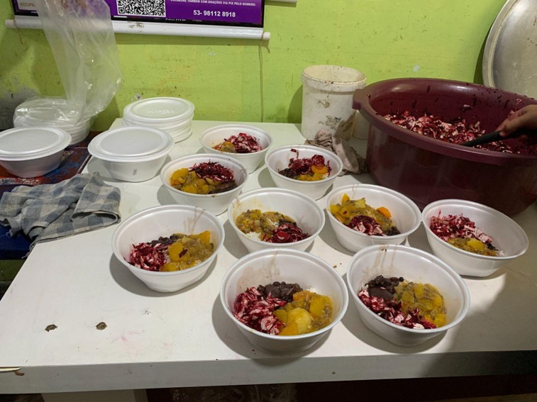 A ocupação Kilombo Urbano Canto de Conexão é a casa de diversas pessoas sem moradia na cidade de Pelotas e realiza aos domingos uma cozinha solidária que visa alimentar as pessoas em situação de rua. Entre às 12h e 14h ocorre a distribuição de marmitas, a cozinha é organizada em um modelo de produção em que cada pessoa envolvida faz um pouco e é comandada por Claudete Lessa.