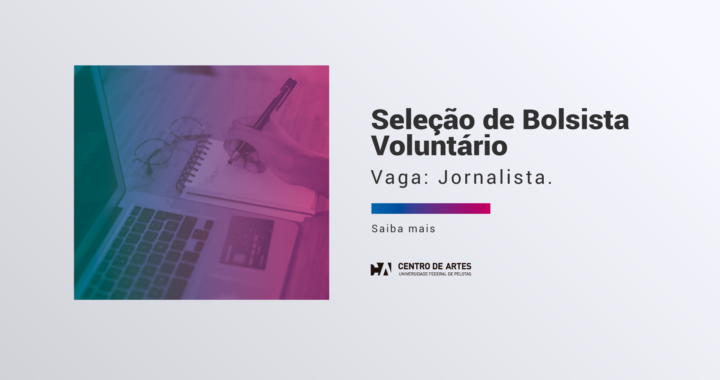 O Centro de Artes da Universidade Federal de Pelotas (UFPel) está com inscrições abertas para a seleção de um bolsista voluntário, voltado para estudantes do curso de Jornalismo. A vaga oferece a oportunidade de atuar diretamente na produção de conteúdo e na comunicação institucional do Centro de Artes.