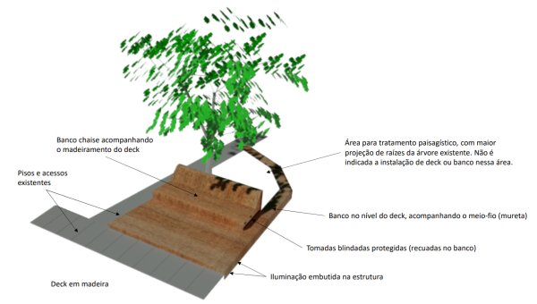 Este processo trata da solicitação de construção de um deck de madeira no jardim do Centro de Artes, ao redor de uma árvore existente em frente à cozinha e à sala 03 do bloco 1, com bancos e instalação elétrica para tomadas e iluminação, concebido como espaço de convivência, uso artístico e integração da comunidade acadêmica.
