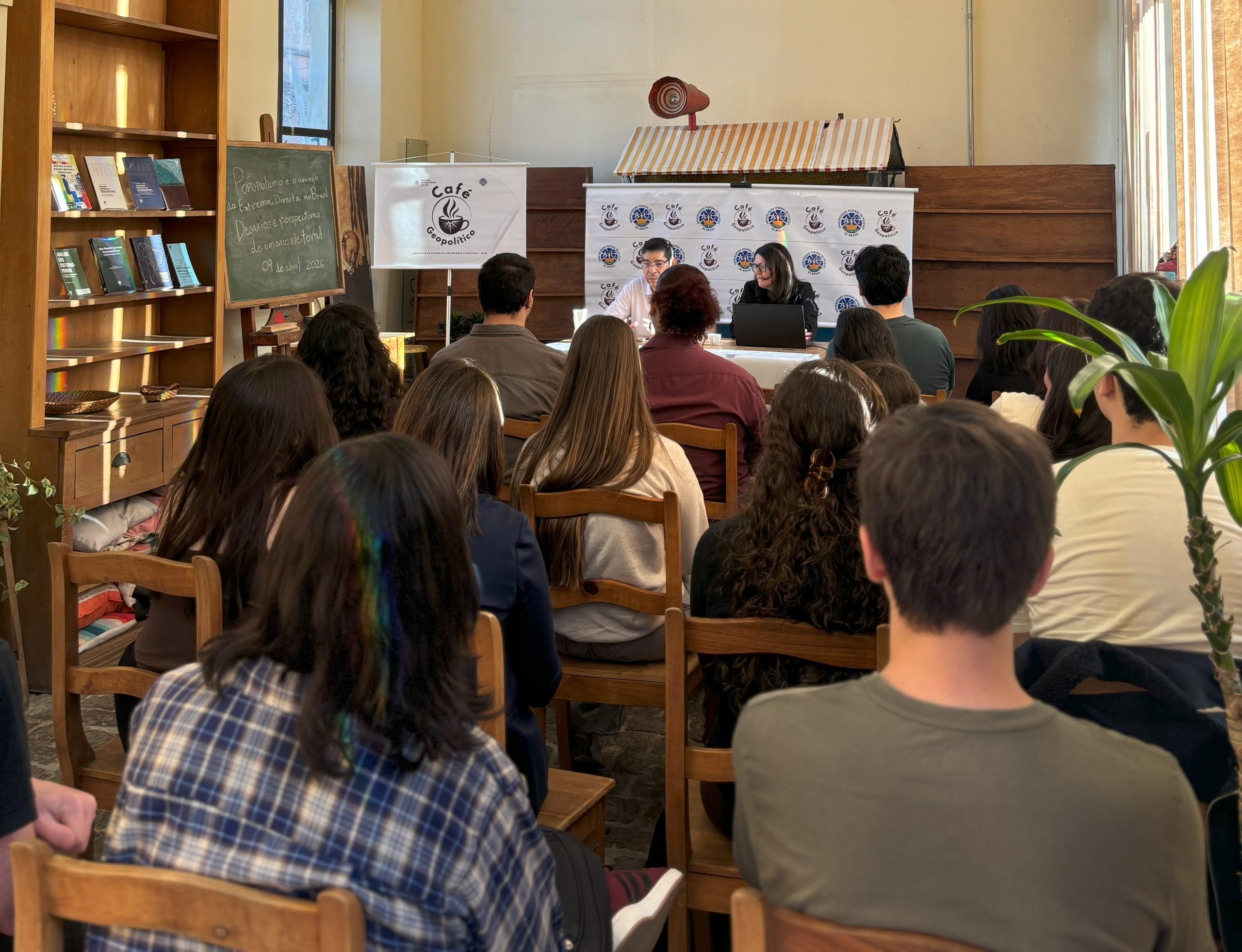 10/04/2026 por geomercosul Como foi a Edição de abril “Populismo e Avanço da Extrema-Direita no Brasil. Desafios e perspectivas em um ano eleitoral”, foi o tema abordado por Letícia Baron. Veja como foi… Algumas imagens: