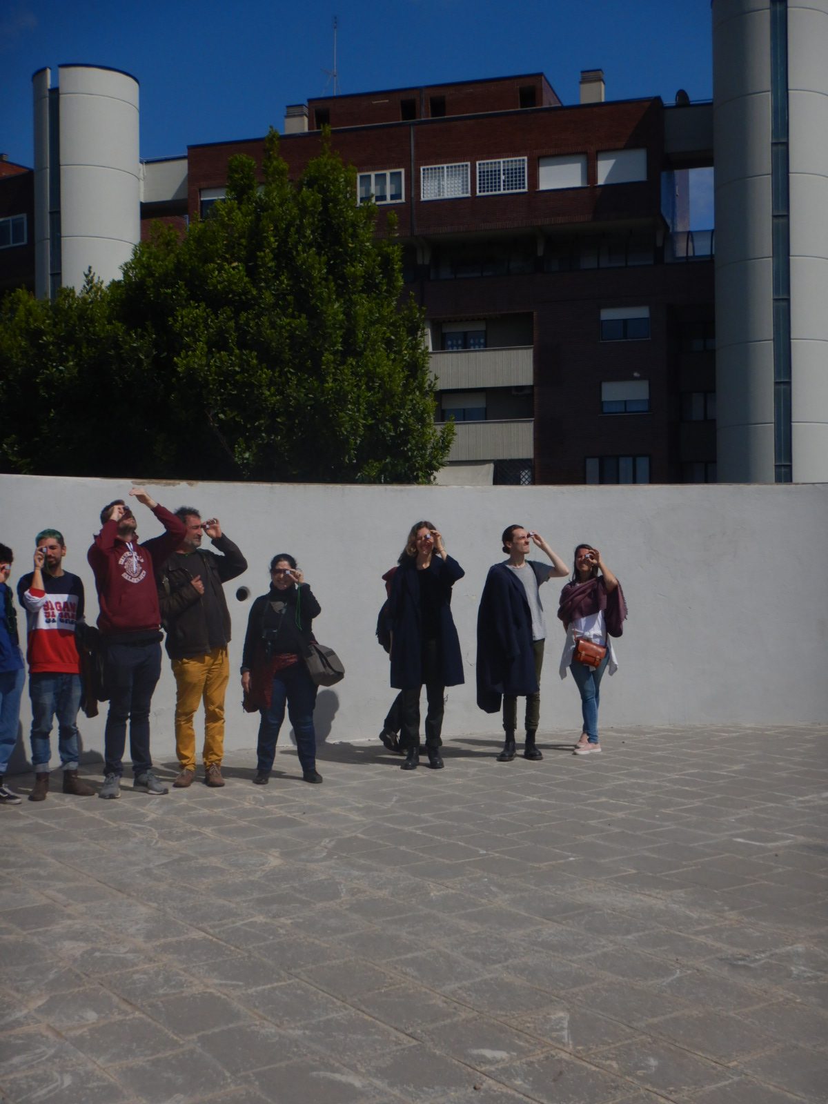 Espaço: intervenção com monOCULOS em caminhada da disciplina de “Arti Civiche”, com imagens de ESPIAR inscritos.