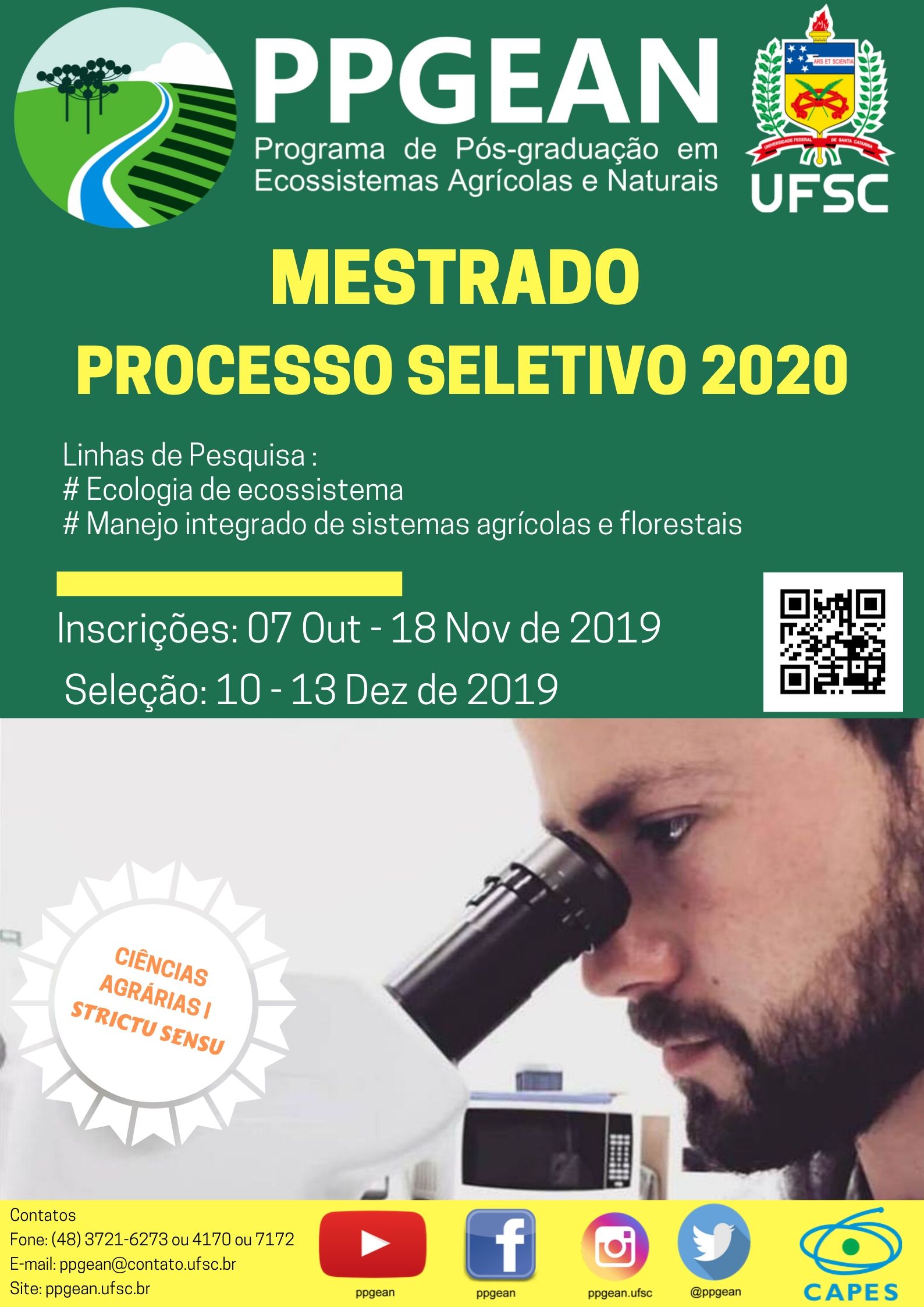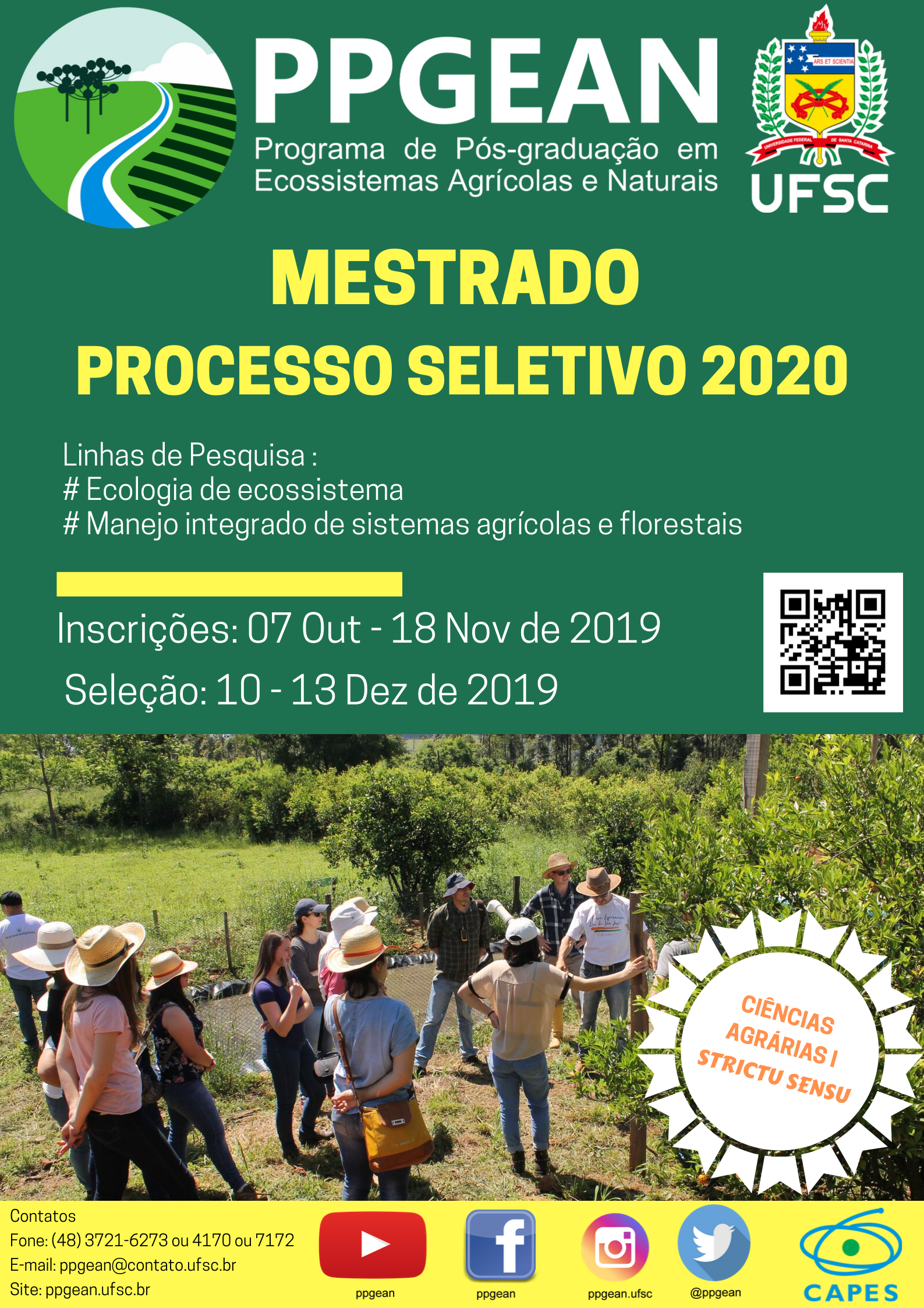 Processo Seletivo do estrado stricto sensu no Programa de Pós-graduação em Ecossistemas Agrícolas e Naturais (PPGEAN) da Universidade Federal de Santa Catarina Centro de Curitibanos.