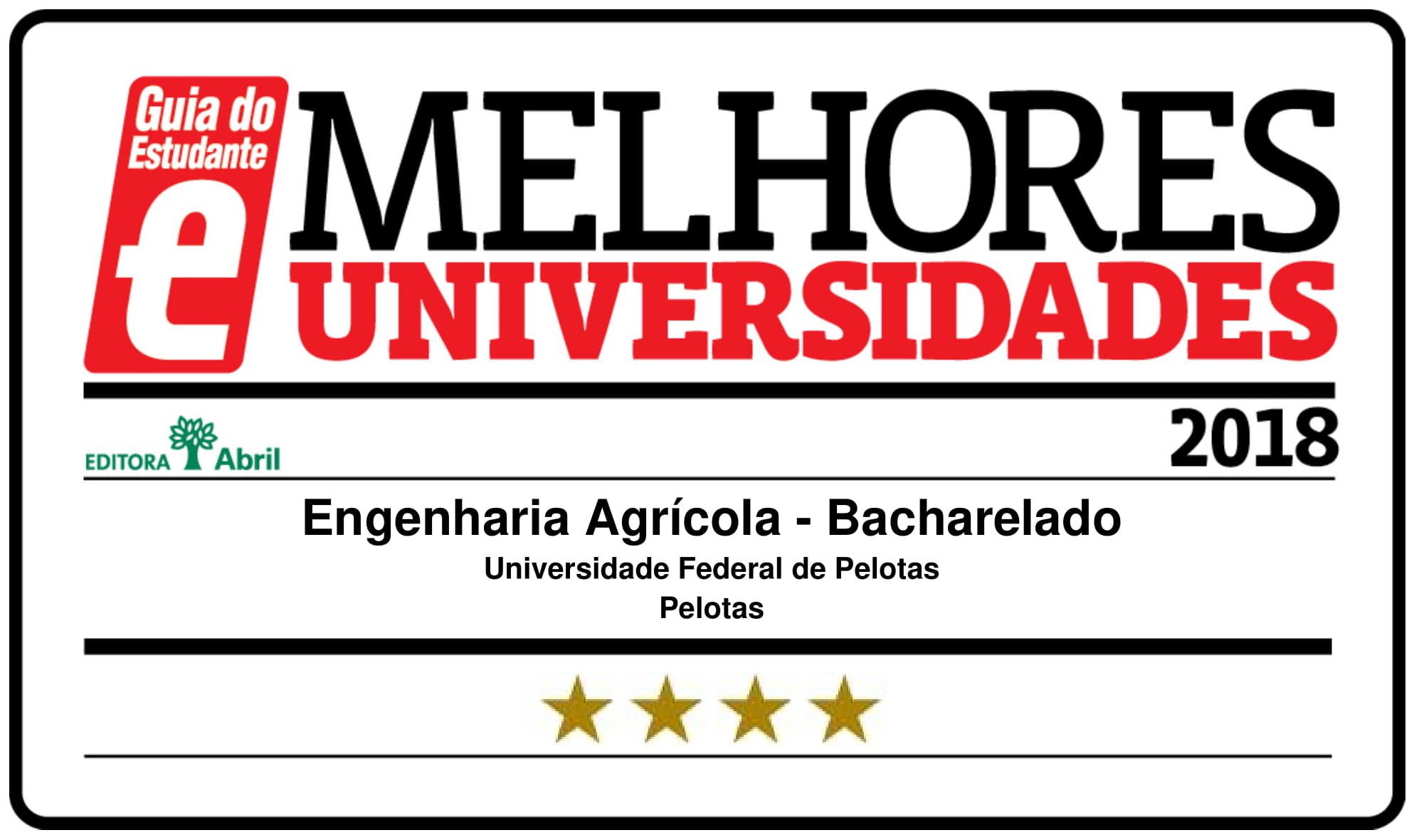 O Curso de Engenharia Agrícola da UFPel foi contemplado com o selo de quatro estrelas do Guia do Estudante.