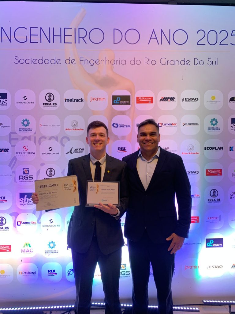 Solenidade da Sociedade de Engenharia do RS, que premiou ao Eng. Alberto Jeske Härter, da Engenharia de Controle e Automação da UFPel, como Aluno Destaque em Engenharia.