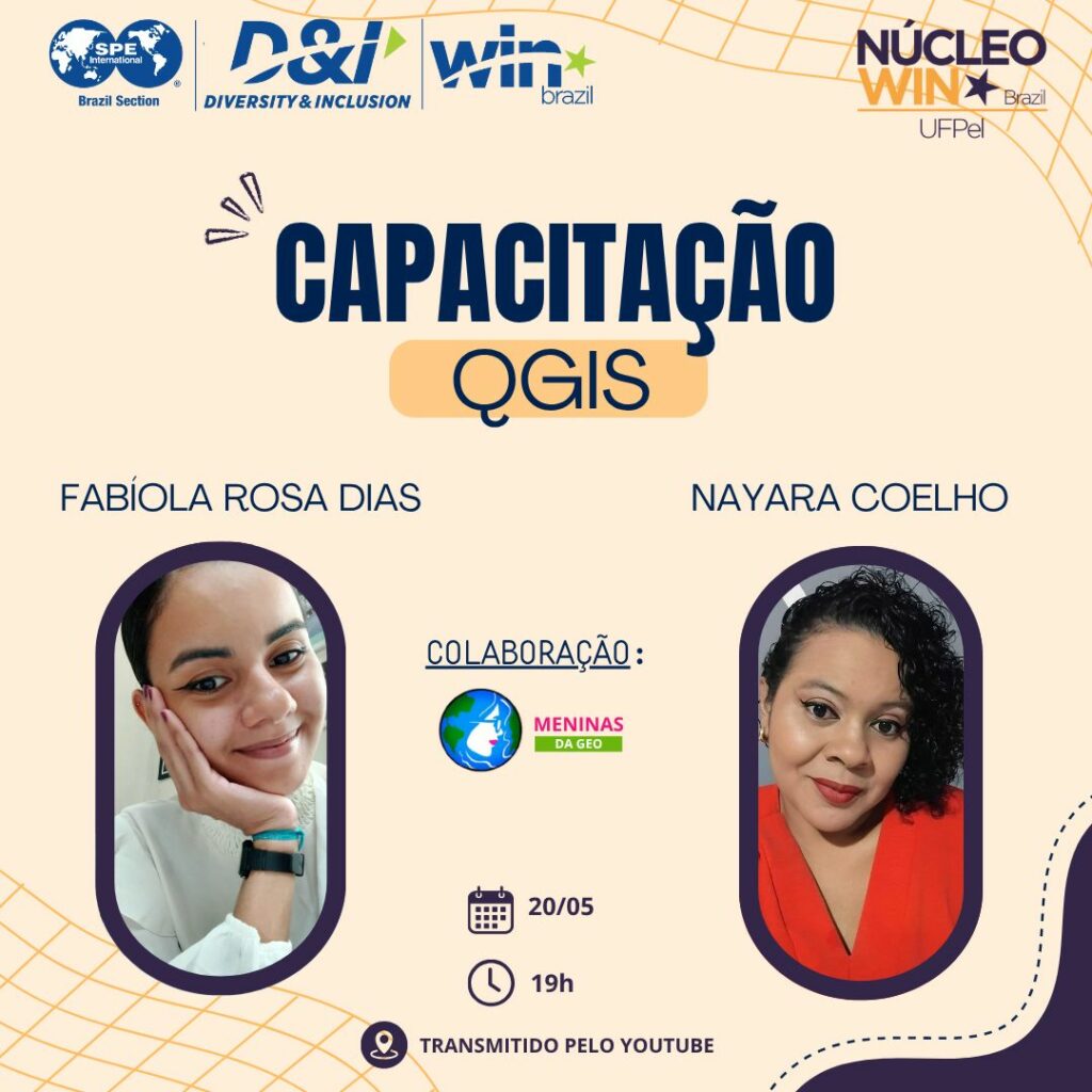 O Núcleo WIN Brazil UFPel, em parceria com o projeto Meninas da Geo (IFPA), convida você para a capacitação em QGIS, com foco na introdução ao software e suas principais funcionalidades. Data: 20 de maio Horário: 19h (através do YouTube) Facilitadoras: Fabíola Rosa e Nayara Coelho – integrantes do projeto Meninas da Geo LINK: https://www.youtube.com/live/SeSf2dVoiDs?si=9aT_J7GEiJxNi3h1 Certificado de participação incluso! O que você vai aprender: * Fundamentos do QGIS * Plugins e extensões * Layout e confecção de mapas Uma oportunidade única de começar a explorar […]