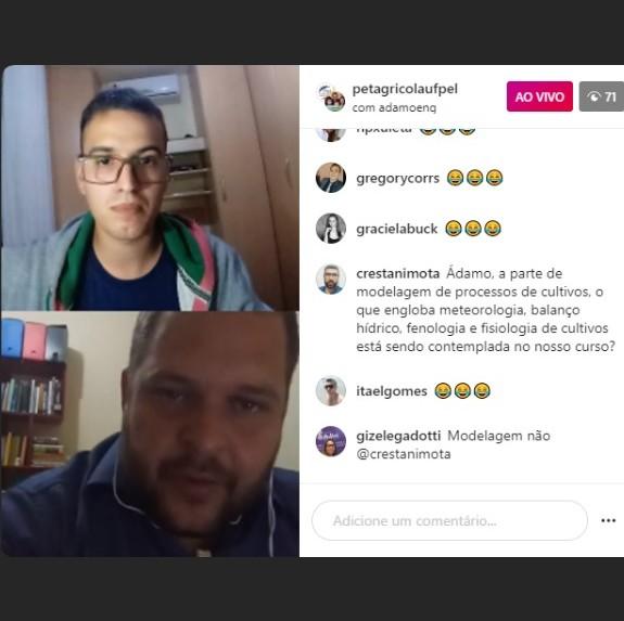Buscando manter contato com os acadêmicos do curso de Engenharia Agrícola, mudamos o formato do projeto Ciclo de Palestras, que está ocorrendo através de lives transmitidas pela nossa página na rede social Instagram, abordando assuntos relevantes, tanto para alunos e engenheiros quanto aqueles de outros setores.