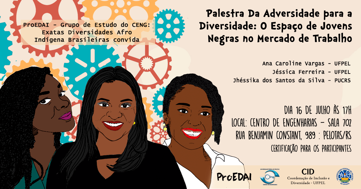 Nesta segunda feira dia 16/07 o Centro de Engenharias da UFPel – CEng sediará uma palestra que coloca em evidência a contribuição e a representatividade das mulheres negras na área da engenharia, com recorte específico no mercado de trabalho.