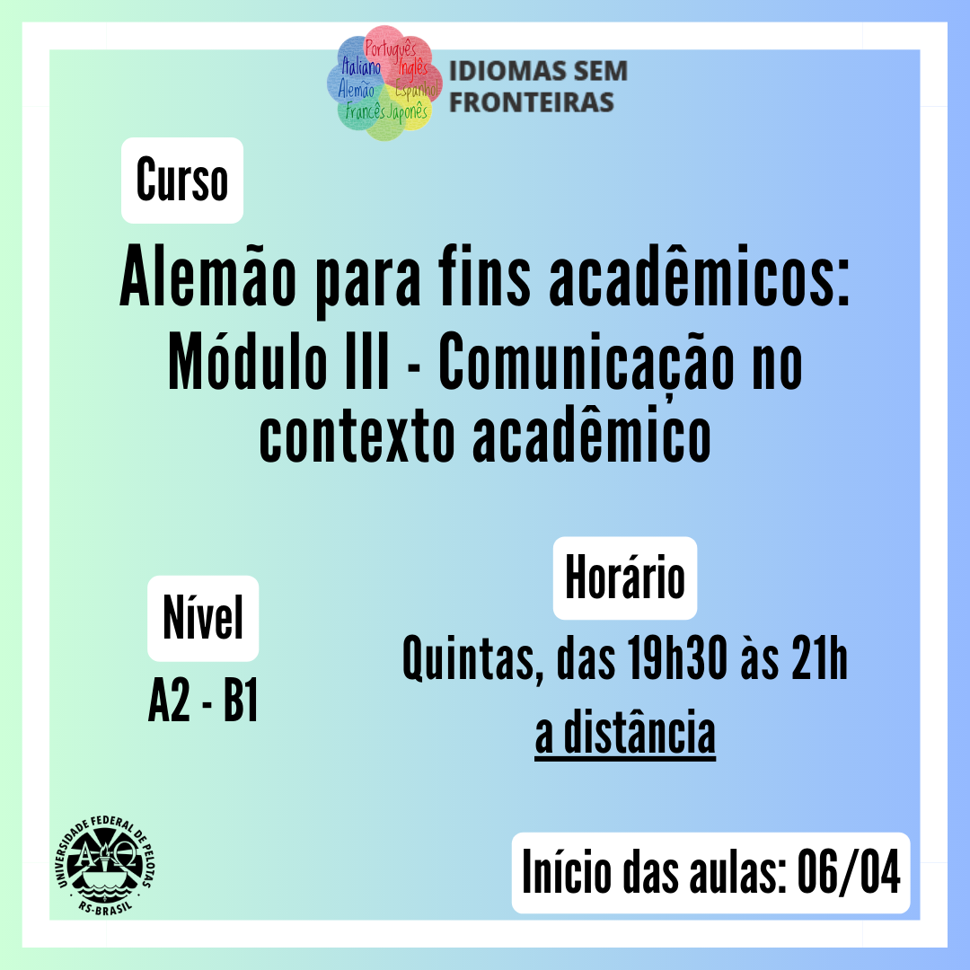 O Programa Idiomas sem Fronteiras da UFPel oferta curso de comunicação em alemão no contexto acadêmico.