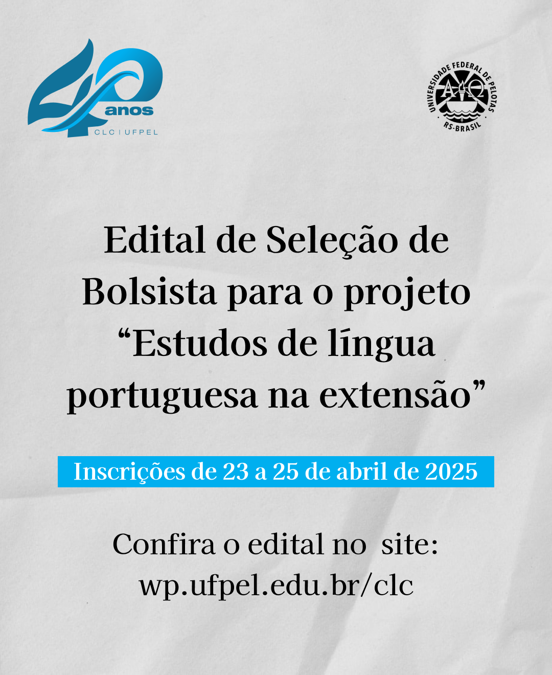 Leia o edital completo em: Edital de Seleção de Bolsista para o projeto “Estudos de língua portuguesa na extensão”