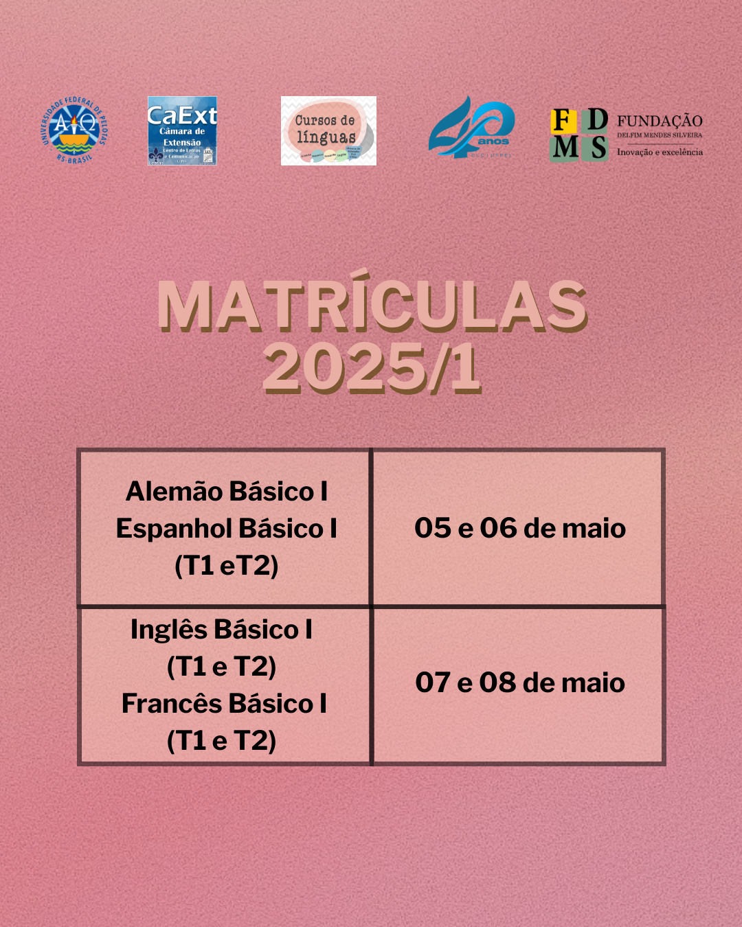 O projeto Cursos de Línguas da Câmara de Extensão do Centro de Letras e Comunicação (CLC) da UFPel divulga a lista dos candidatos sorteados, os quais podem realizar sua matrícula para os cursos em 2025.