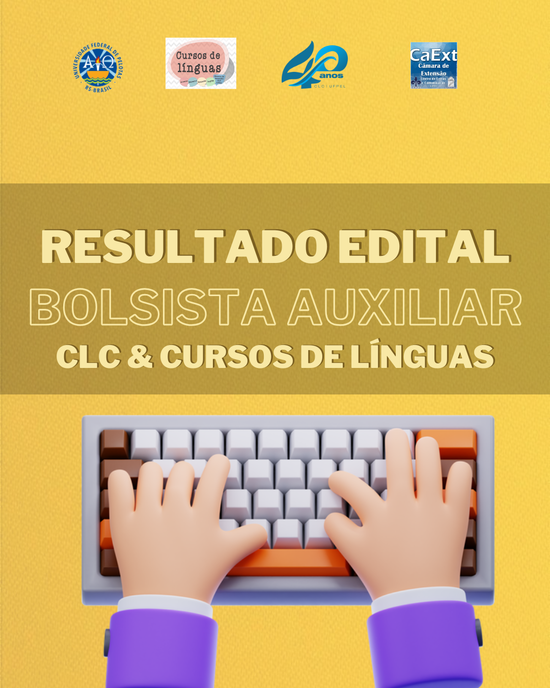 O Centro de Letras e Comunicação (CLC) tem o prazer de divulgar o resultado do EDITAL Nº 01/2025 – Bolsas de Desenvolvimento na Unidade (BDU). O Programa de Bolsas de Desenvolvimento nas Unidades Acadêmicas (BDU) tem por objetivo possibilitar que a política de planejamento e execução do orçamento descentralizado das Unidades Acadêmicas possa também contemplar a implantação de bolsas de Ensino, Pesquisa, Extensão e Desenvolvimento Institucional na UFPel.