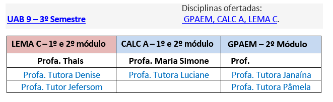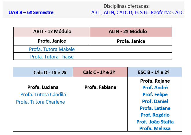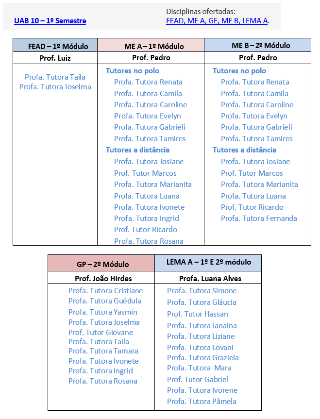 | Coordenação do Curso | Coordenação de Tutoria | Secretário |
