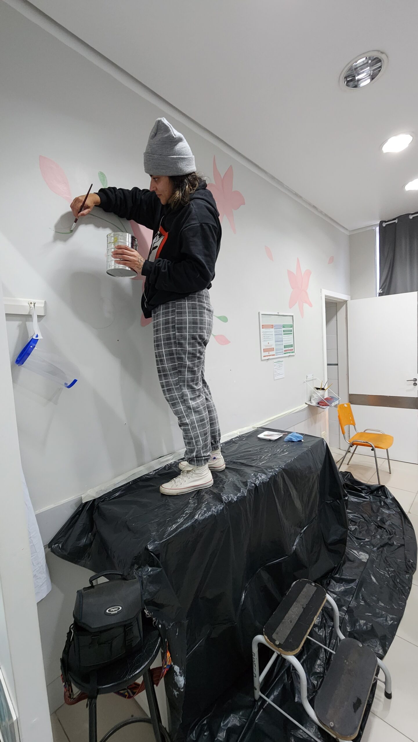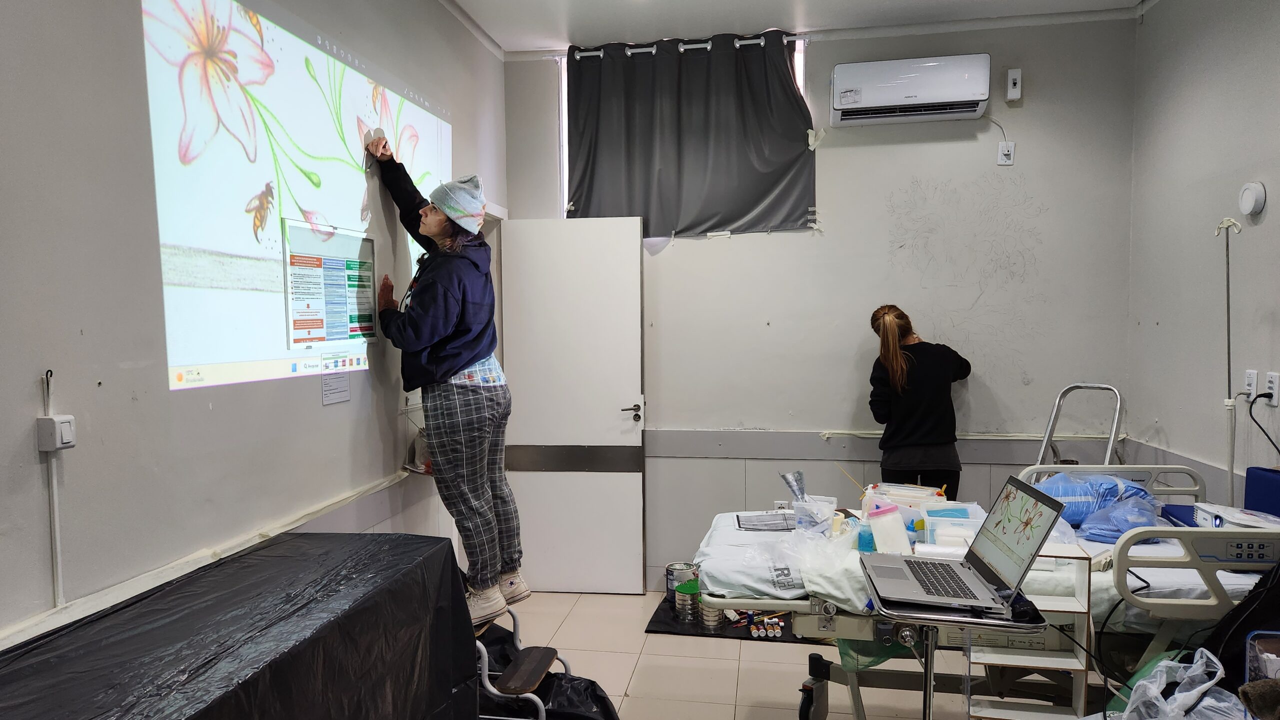 O projeto “Colorindo a sala de Pré parto, Parto e Pós parto: o Impacto da ambiência no processo de parturição”, idealizado pelas professoras do curso de Enfermagem, Profª. Dra. Ana Paula Escobal e Profª. Dra. Carolina Demori, buscou uma parceria com o curso de Artes Visuais Licenciatura, através da intermediação com a Profª. Dra. Thaís Sehn, para fazer intervenções artísticas neste espaço do Hospital Escola/UFPEL/EBSERH (HE). localizado em Pelotas-RS. O objetivo desse projeto é proporcionar um ambiente mais confortável e acolhedor, propiciando uma boa experiência sensorial neste momento tão importante para tríade mãe, filho e acompanhante. Outrossim, deseja-se promover um ambiente envolvente, confortável e humanizado aos profissionais de saúde e acadêmicos que realizam práticas na na sala de PPP do HE (ESCOBAL, DEMORI, 2012).