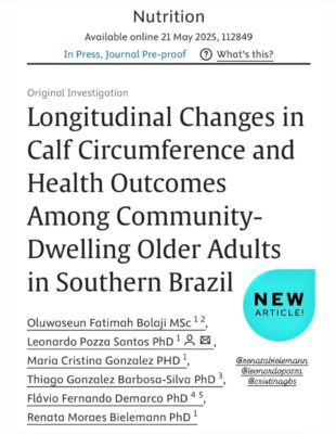 Acaba de ser publicado na revista científica Nutrition o mais recente artigo com dados do estudo COMO VAI?, intitulado Longitudinal changes in calf circumference and health outcomes among community-dwelling older adults in southern Brazil. O trabalho investigou como as mudanças na circunferência da panturrilha, ao longo de seis anos, estão relacionadas com desfechos de saúde entre pessoas idosas residentes na cidade de Pelotas (RS).