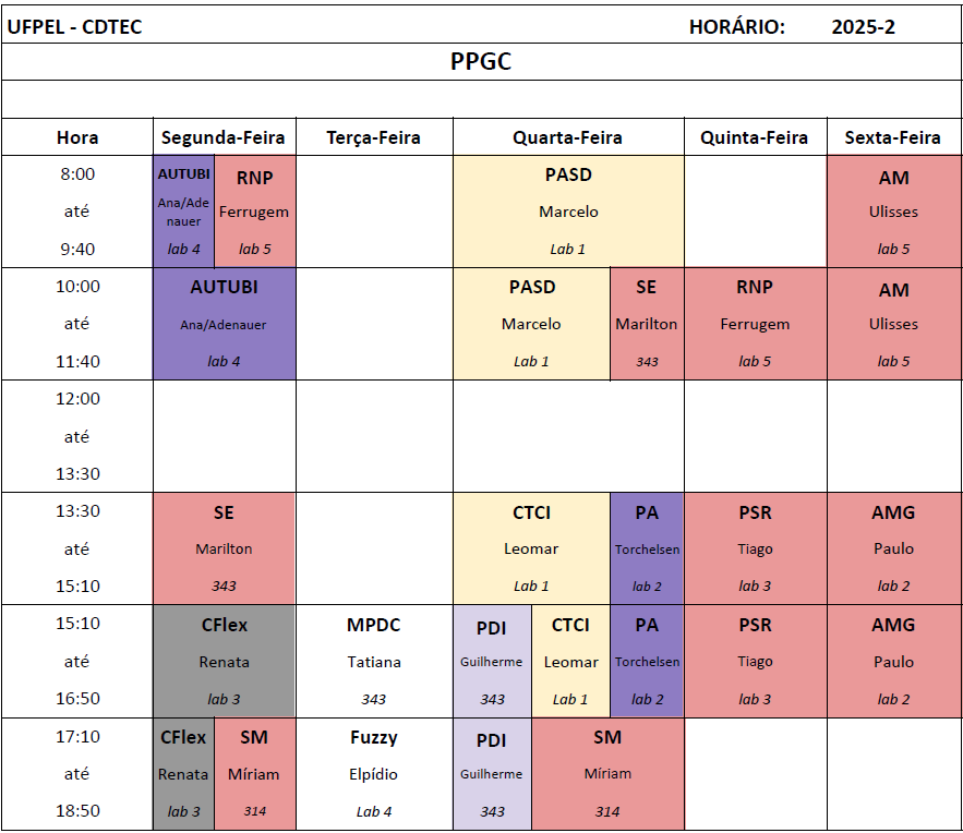 - 8/09/2025: Início do período letivo (disciplinas) 2025/2 no PPGC