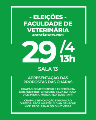 Na última sexta-feira, dia 05 de setembro, foi realizada a aplicação das provas para preenchimento das vagas nos Programas de Residência de Medicina Veterinária. Ao todo, 168 candidatos disputaram as 21 vagas, distribuídas entre os 13 Programas: Anestesiologia em Medicina Veterinária, Clínica Cirúrgica em Animais de Companhia, Clínica Médica em Animais de Companhia, Clínica Médica de Equinos, Clínica Médica de Ruminantes, Diagnóstico por Imagem, Inspeção e Tecnologia de Produtos de Origem Animal, Medicina de Animais Silvestres, Medicina Veterinária Preventiva, Patologia Animal, Patologia Clínica Veterinária, Saúde […]
