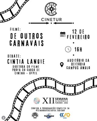 Nesta edição, vamos exibir o documentário “De Outros Carnavais” e, ao final da sessão, teremos um bate-papo especial com a diretora do filme, Cíntia Langie, professora do curso de Cinema da UFPel. A atividade integra a programação da XII Semana Acadêmica do Curso de Turismo – UFPel e propõe um olhar sobre cultura, território e …