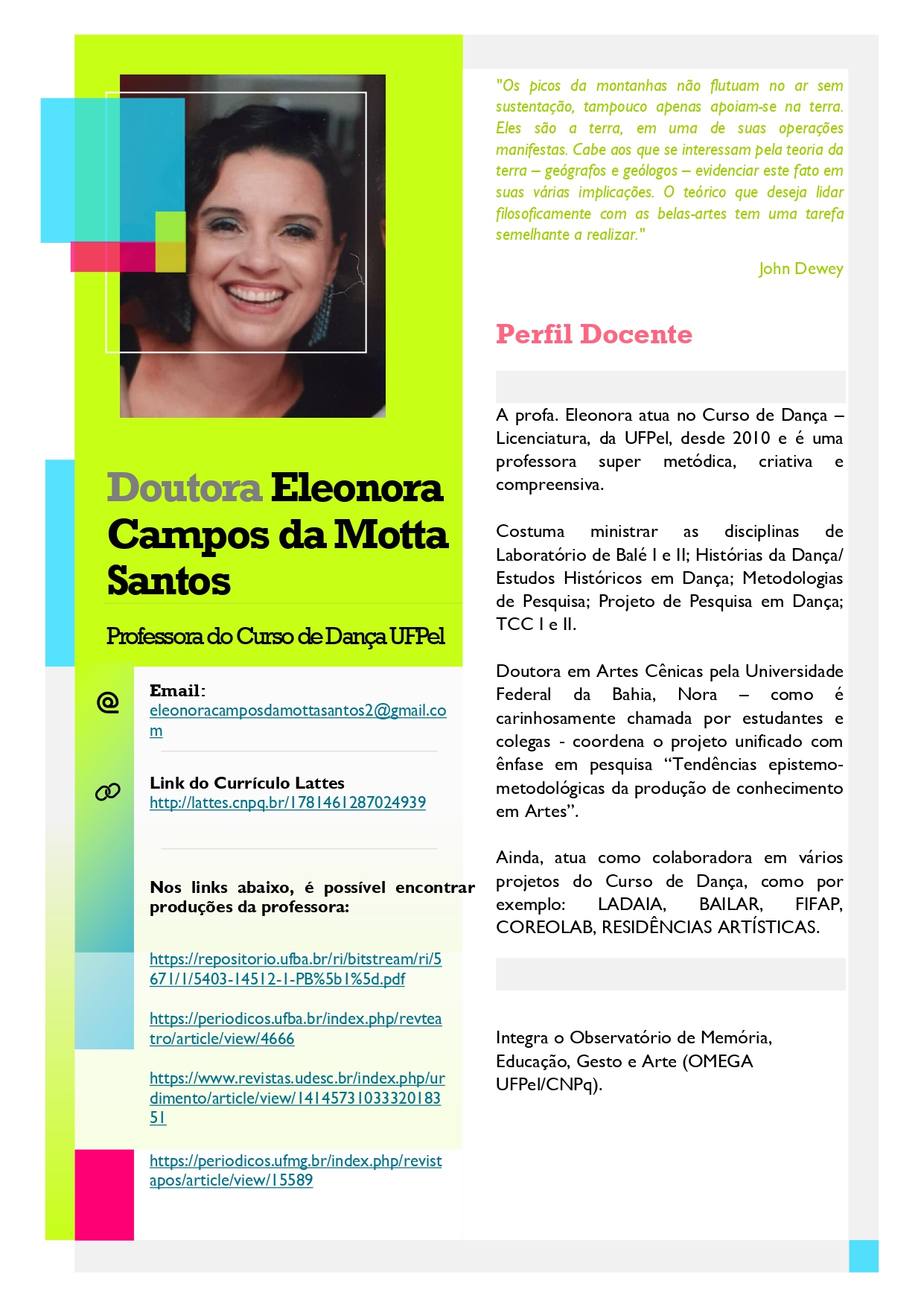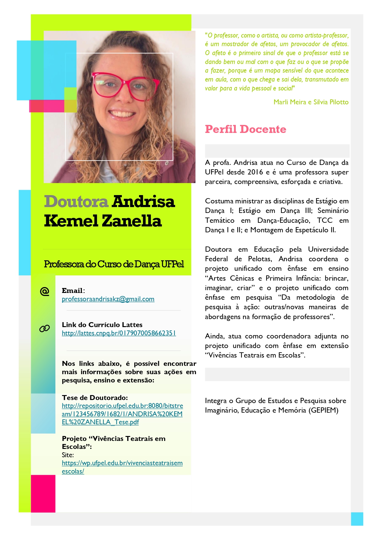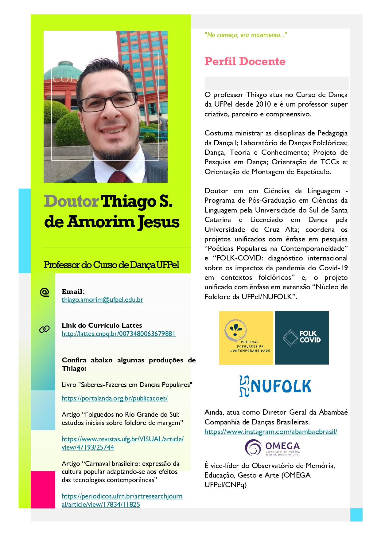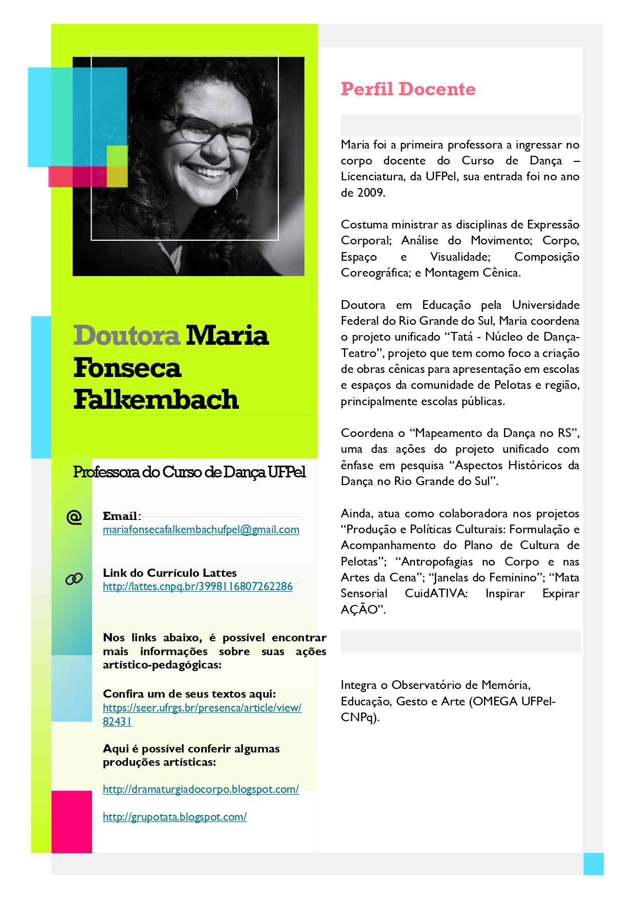 Compartilhamos abaixo os Perfis Docentes dos professores do Curso de Dança – Licenciatura da UFPel.