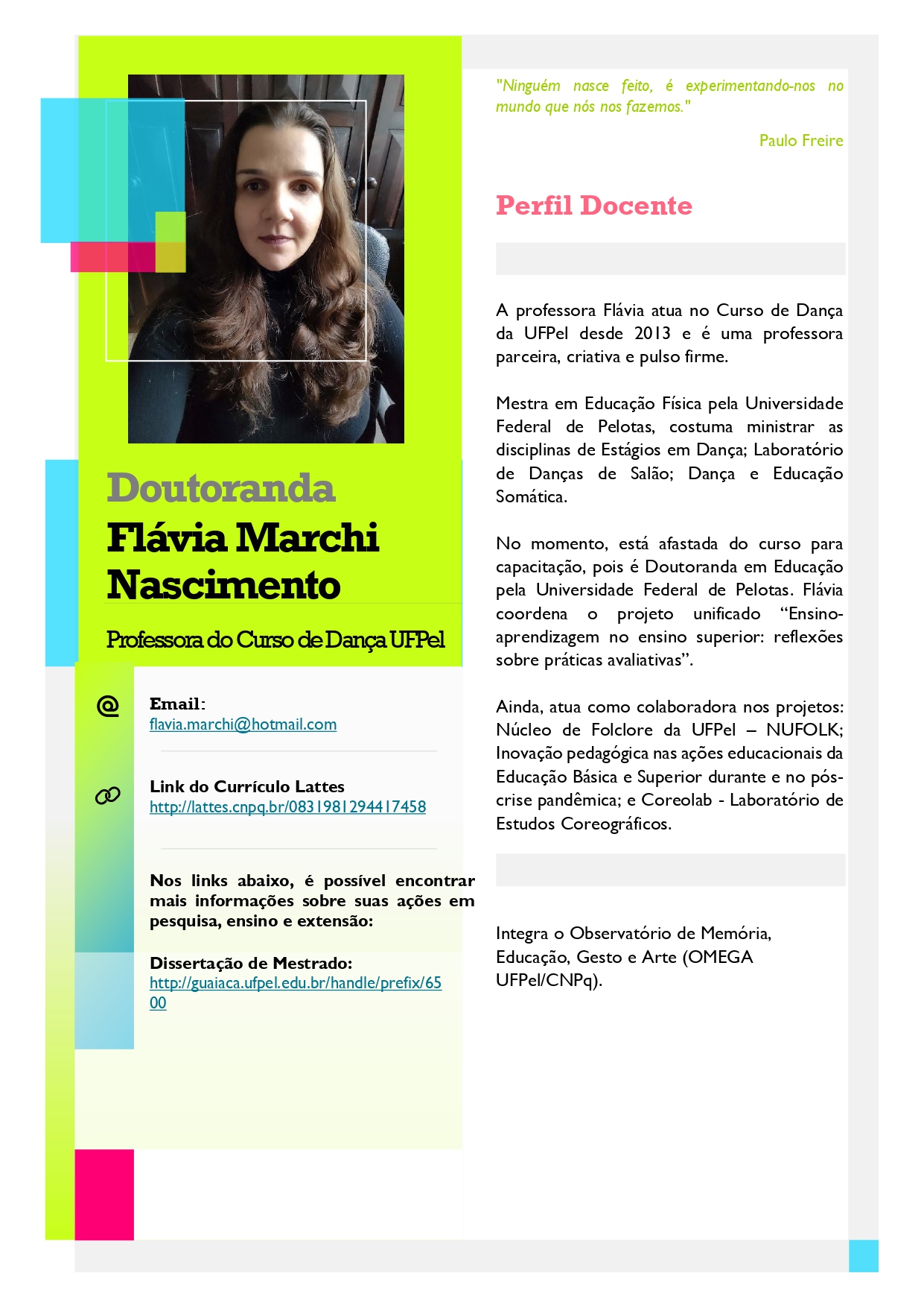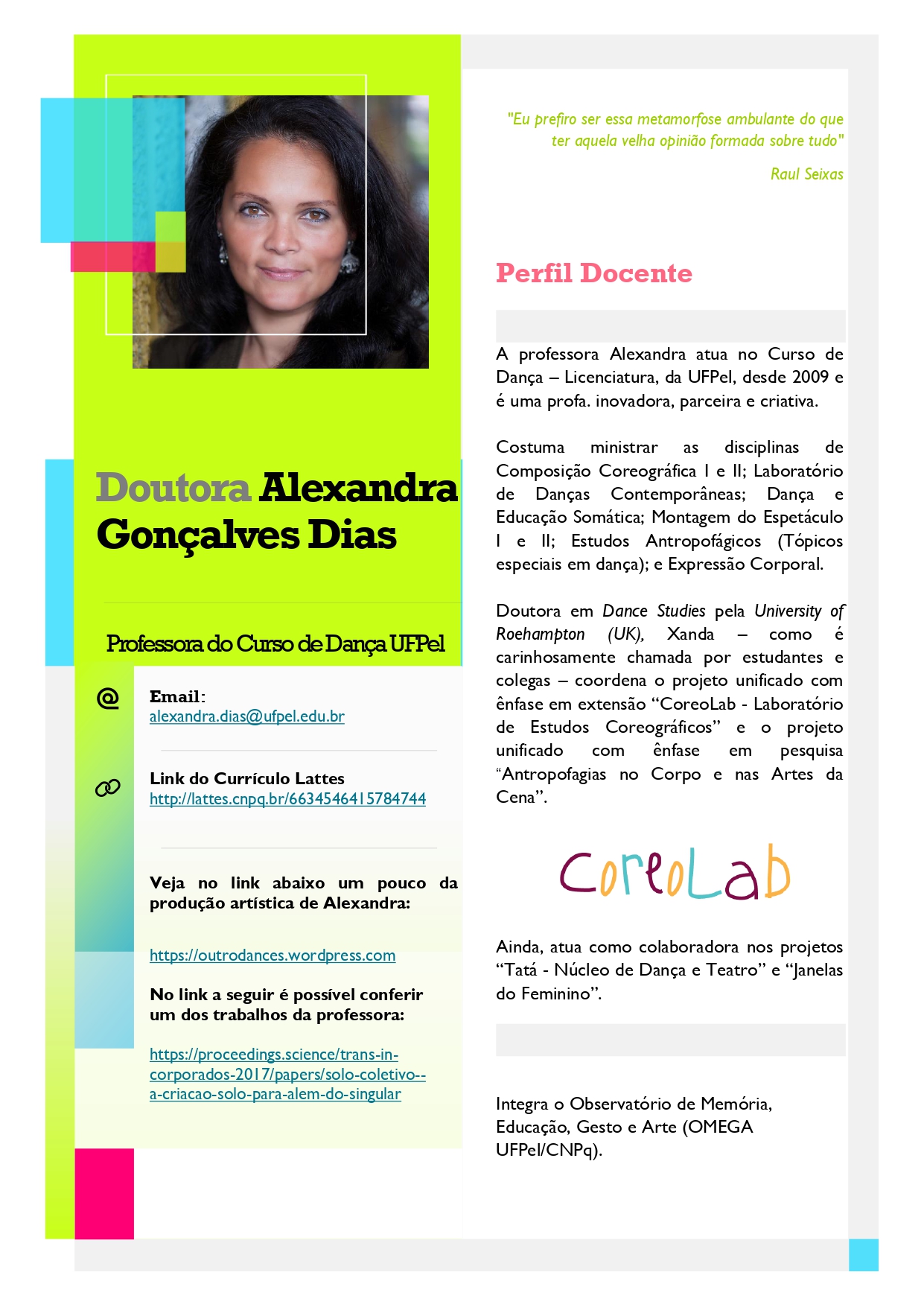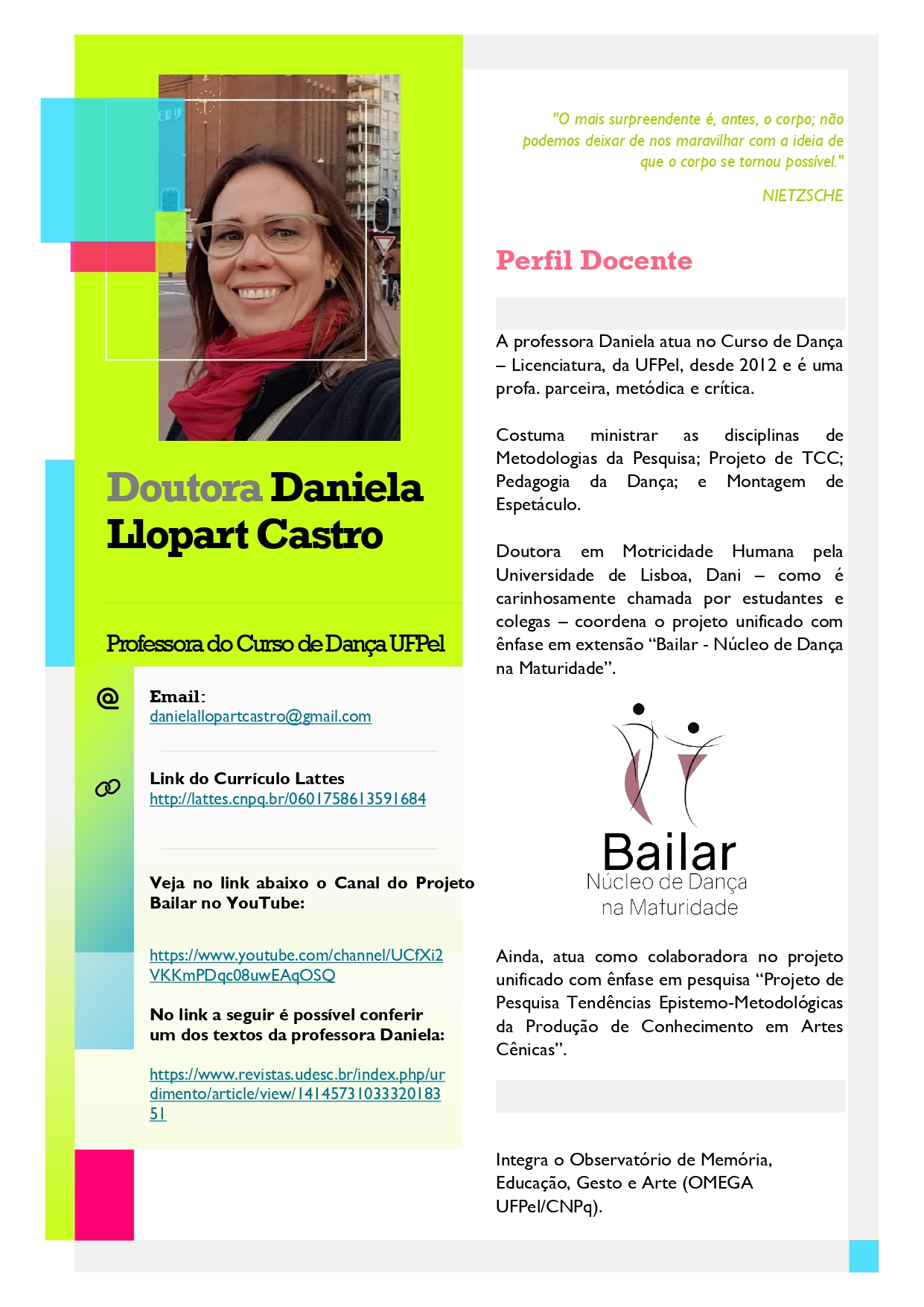 Compartilhamos abaixo os Perfis Docentes dos professores do Curso de Dança – Licenciatura da UFPel.