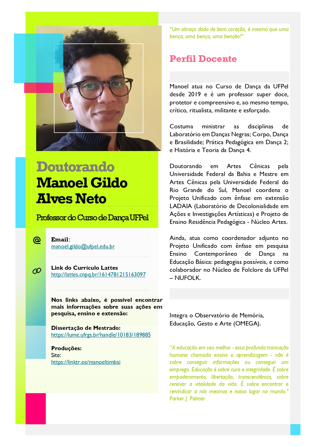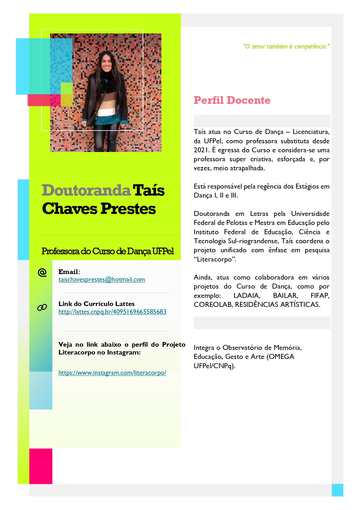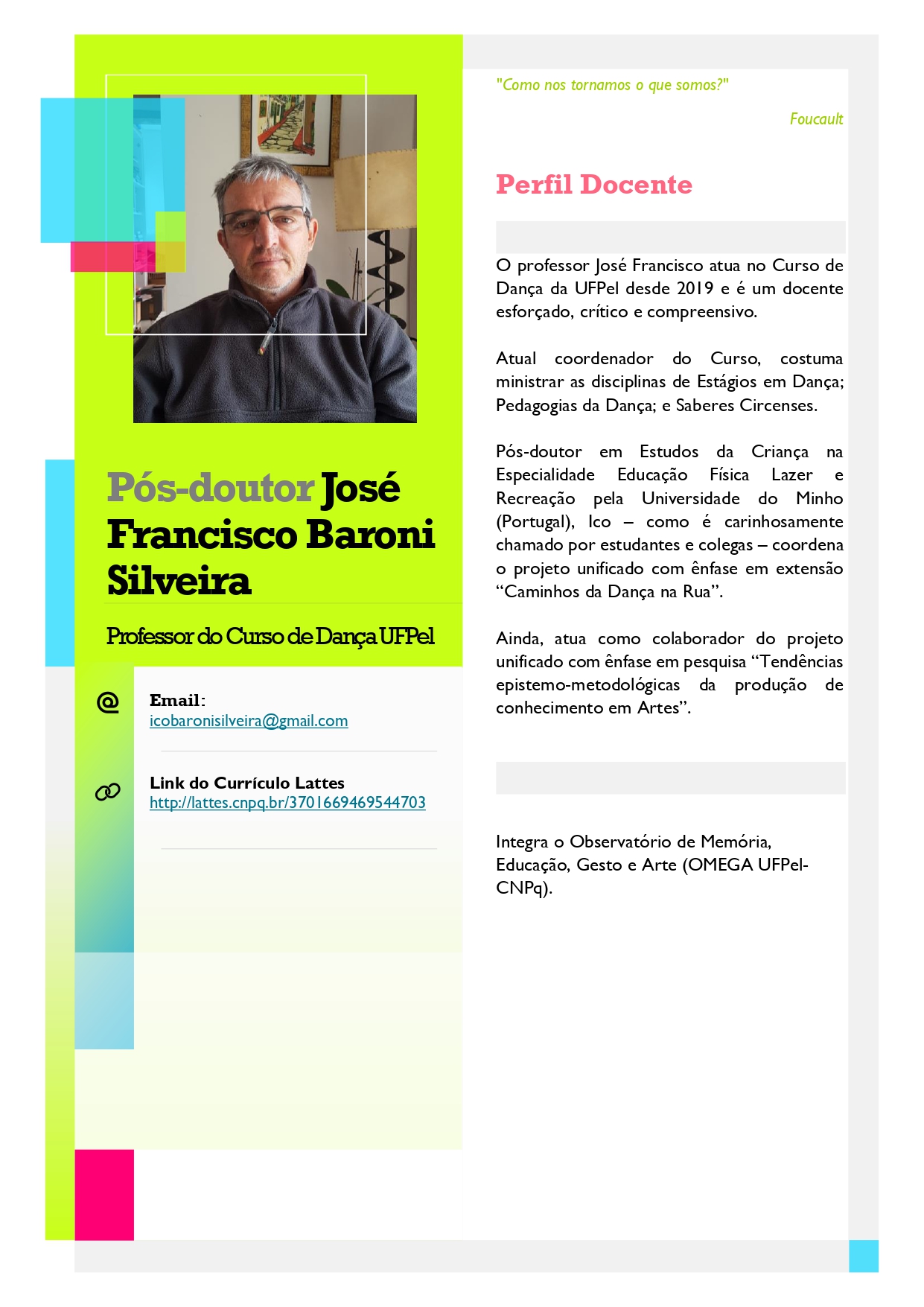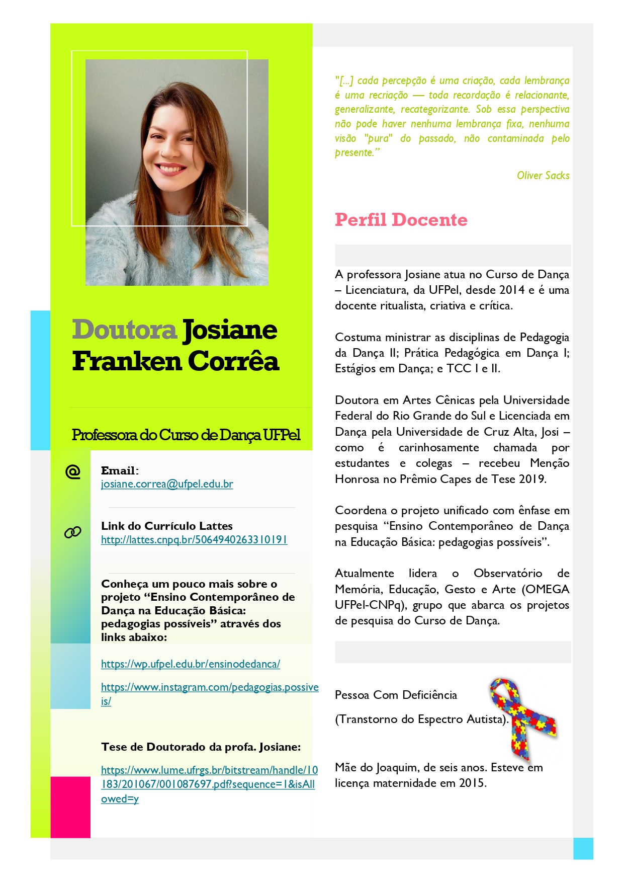 Compartilhamos abaixo os Perfis Docentes dos professores do Curso de Dança – Licenciatura da UFPel.
