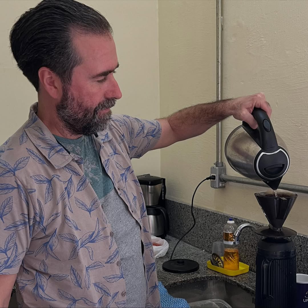 A proposição, trazida por Deisimer Gorczevsk, era bastante simples e direta: convidamos os participantes dos nossos grupos para tomar um café e conversar. Édio Raniere se prontificou a fazer o café e a reservar uma sala na Editora da Ufpel, a mais próxima da cozinha. Eduarda Duda e Deisimer providenciaram alguns salgadinhos e os famosos doces de Pelotas…