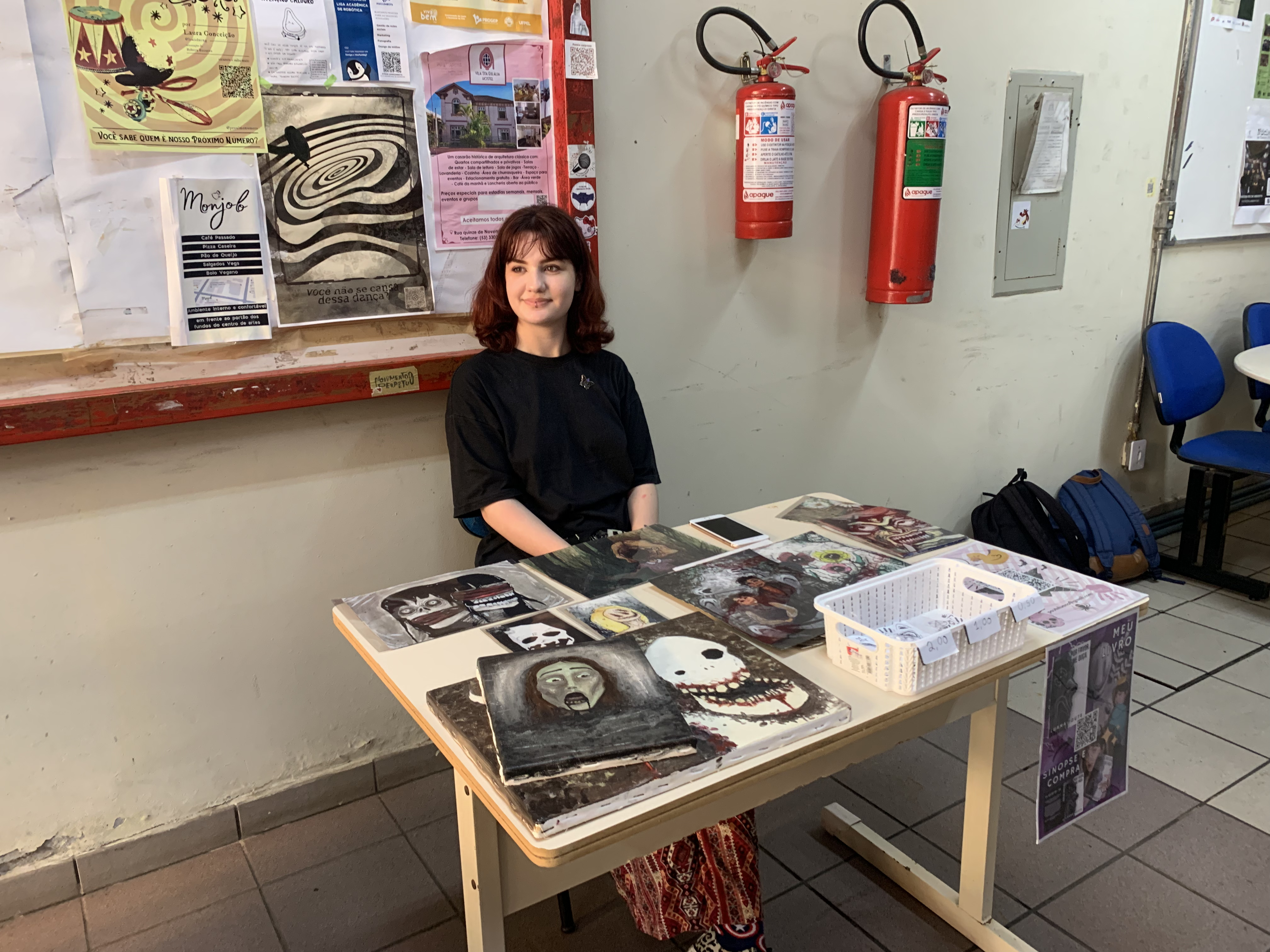 Loreena Padilha (23) aluna do quinto semestre de artes visuais licenciatura é uma das artistas da exposição, em conversa a jovem contou um pouco da sua vertente artística e a inspiração para sua obra. “Eu quero trazer uma mensagem mais de um visual de sonhos e eu gosto muito do abstracionismo e eu quero sempre trazer uma mensagem mais psicodélica“.