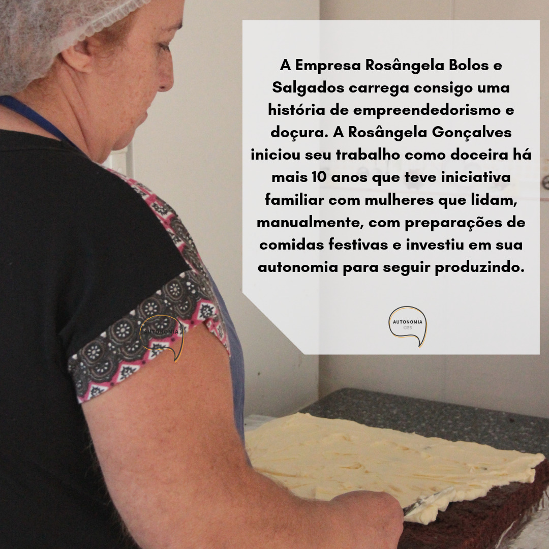 Com seus produtos culinários Rosângela Gonçalves, empreendedora na ‘Empresa Rosângela Bolos e Salgados’, faz parte do projeto, obtendo por meio da assessoria, um espaço fundamental para sua autonomia, e demonstrando com isso, a relevância do trabalho manual de comidas caseiras realizados por mulheres que carregam, como ela, um histórico familiar do seu serviço.