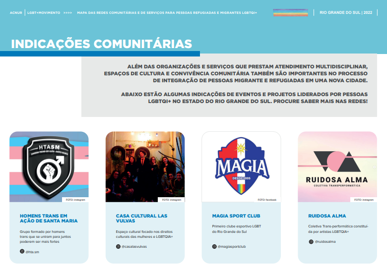 Organização reconhecida pelo ACNUR. Fonte: Mapa das Redes Comunitárias e de Serviços para Pessoas Refugiadas e Migrantes LGBTQI+/ACNUR