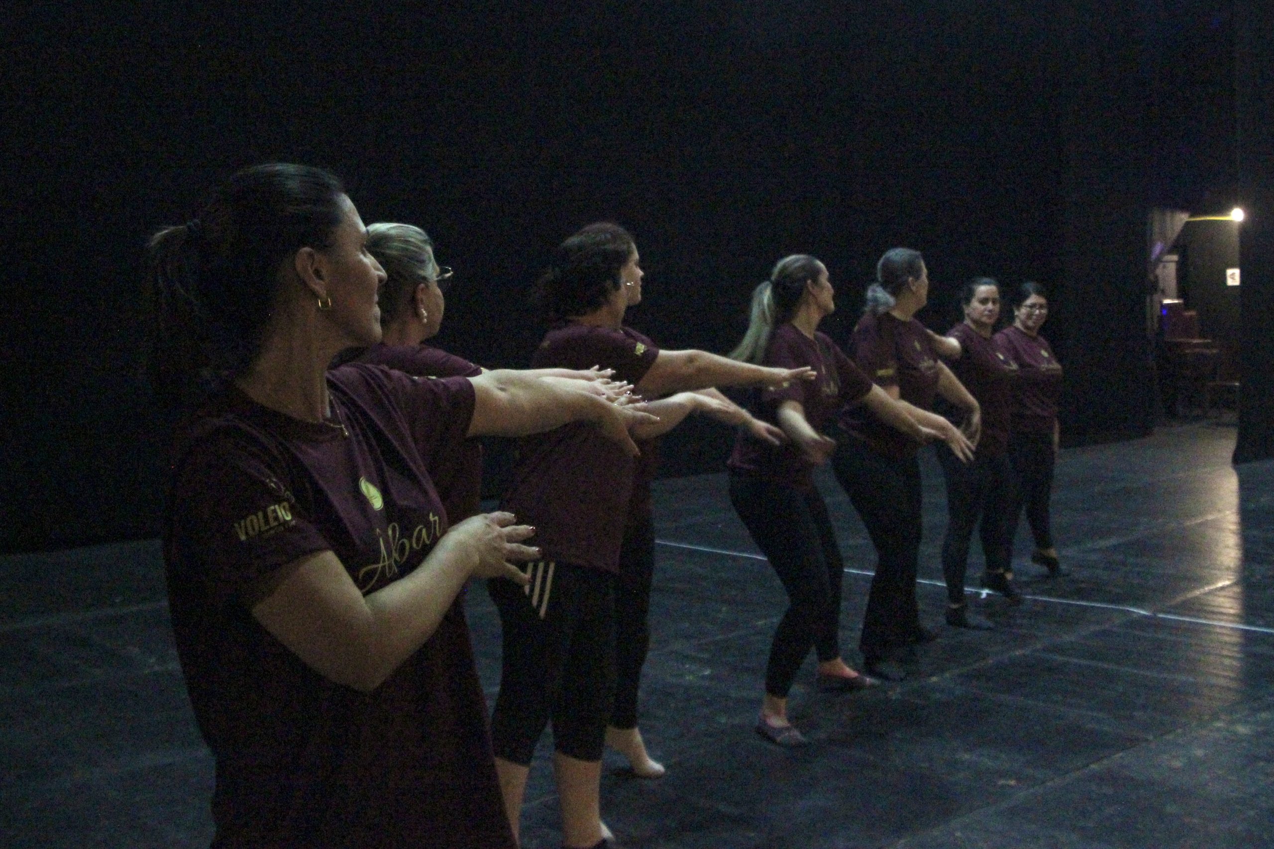 Turma Adulto ensaia pela primeira vez em um palco nos ensaios do espetáculo Âmbar. Foto: Bruna Farias/Em Pauta