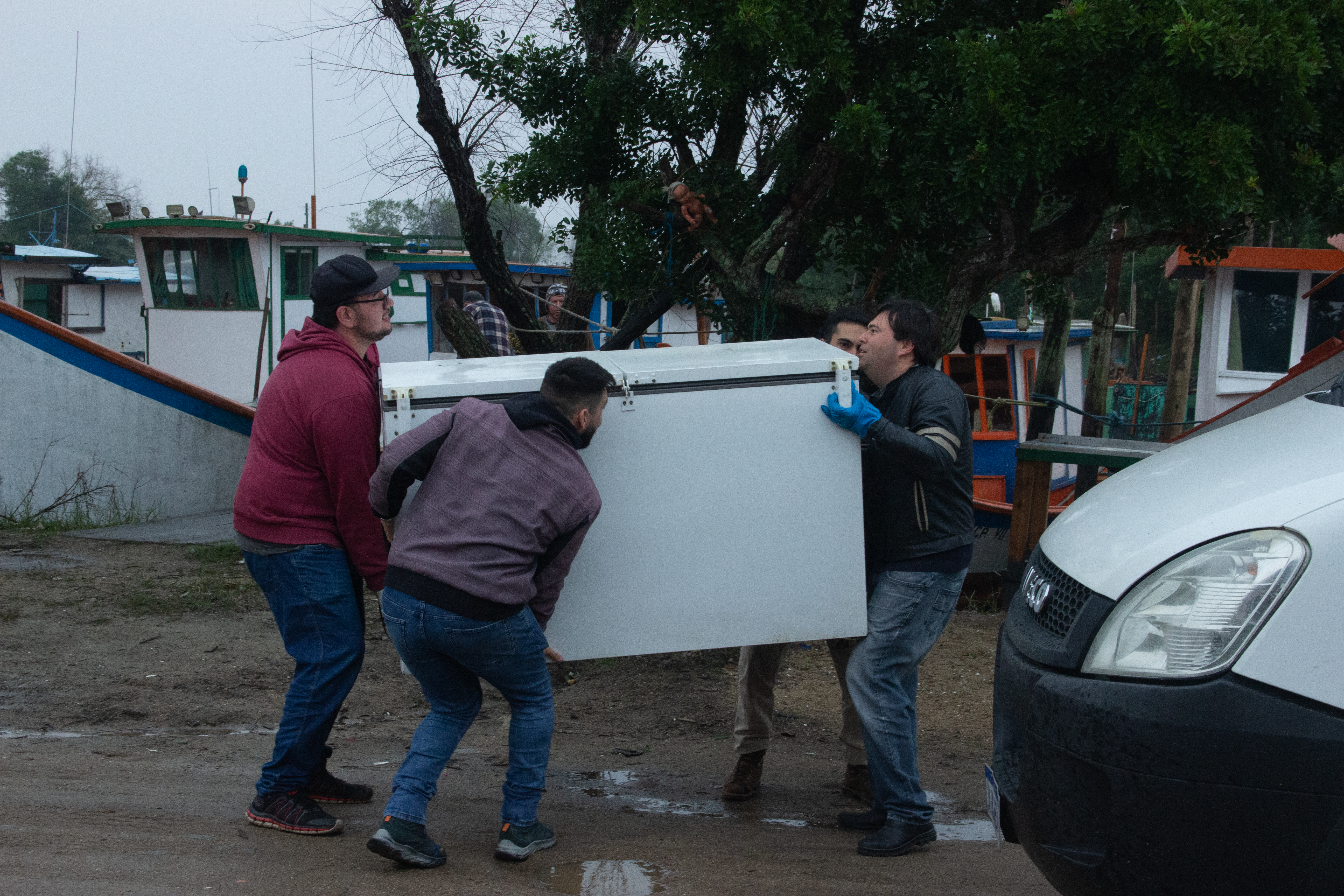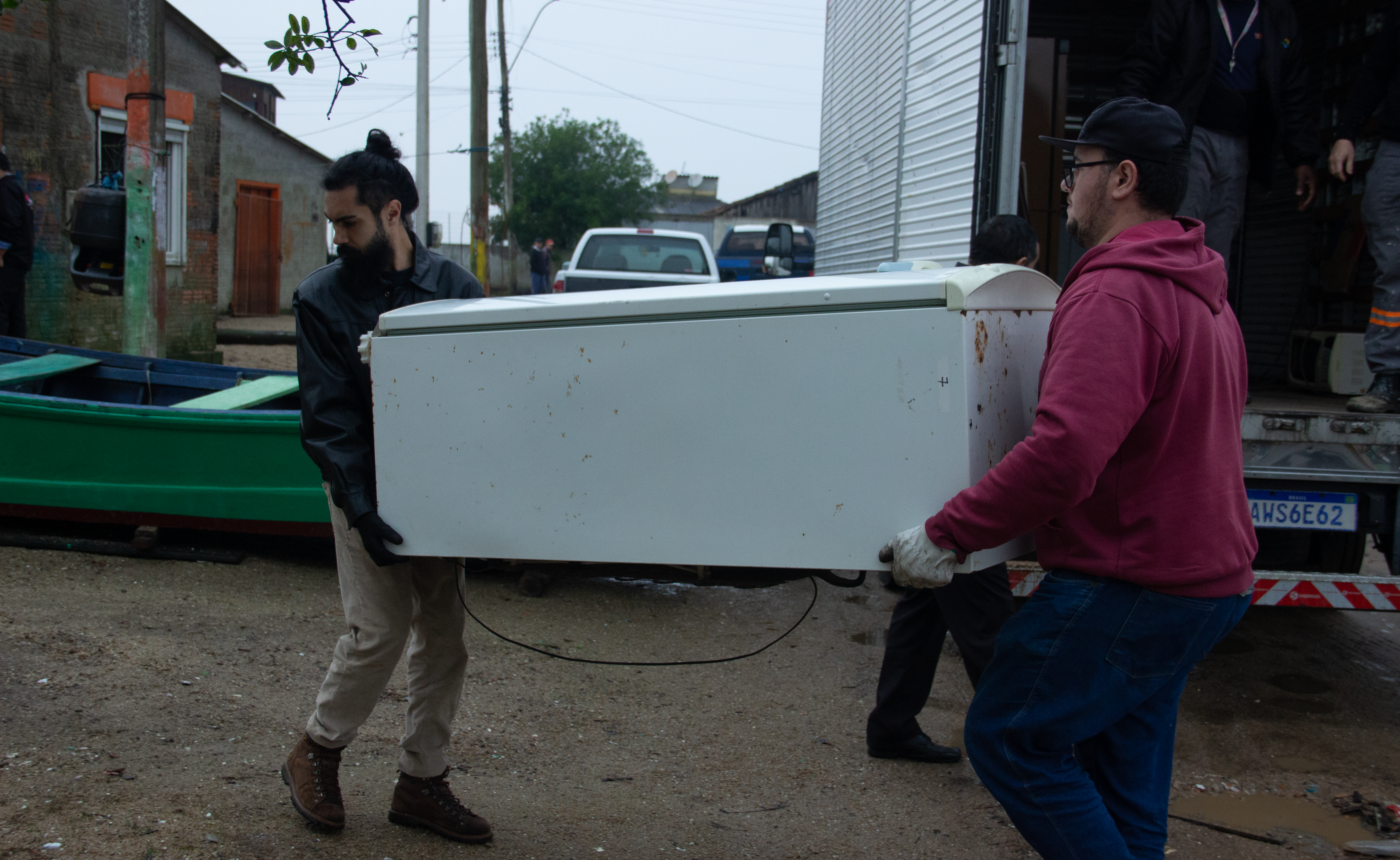 Equipe entrega geladeira na Colônia Z3 / Foto: Tobias Bernardo
