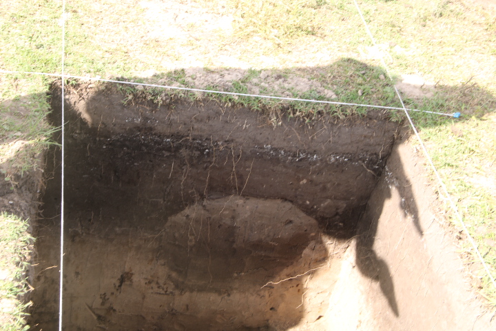 No local trabalham cerca de 7 pessoas, todas de coletes verde limão, chapéus e proteção contra o sol inclemente do dia quente de março. Estão ali os mais diversos utensílios e ferramentas para cavar, separar, medir, anotar, registar as amostras que serão posteriormente encaminhadas para o laboratório. Pás, carrinho de mão, baldes, peneiras e uma parafernália de ferramentas específicas compõem os equipamentos do grupo que naquele dia estava retirando as últimas amostras do local. Depois, os 5 profundos buracos teriam de ser fechados para deixar o ambiente o mais próximo ao que estava antes de ser explorado. O local é escavado até o ponto onde se pode verificar que não é mais terra acumulada por trabalho humano, em cerca de 80 cm de profundidade.