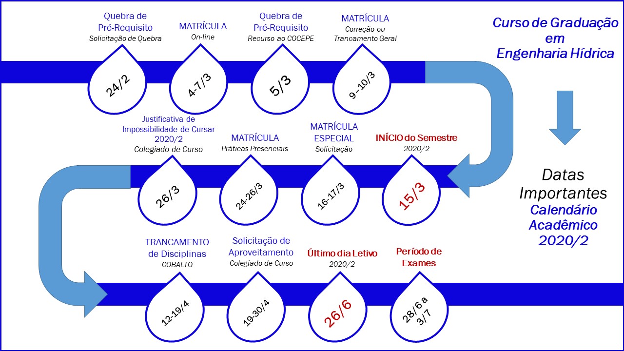 Os alunos que estiverem impossibilitados de cursar o semestre 2020/2 devem preencher o formulário abaixo e encaminhar para o colegiado até o dia 26 de março de 2021, para o e-mail: engenhariahidrica@gmail.com