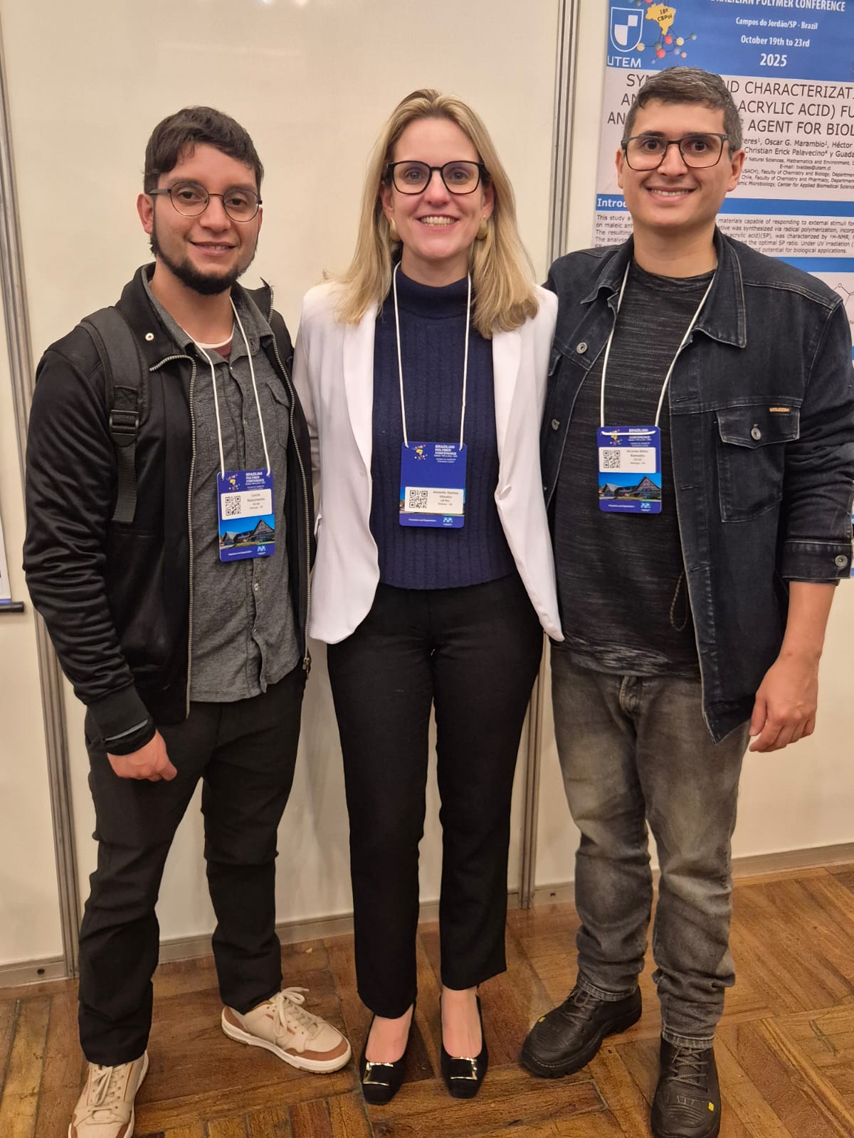 21/10/2025 por engmateriais CBPol 2025 Professora Amanda ladeada pelos egressos Lucas Nascimento e Ricardo Ritter. O encontro ocorreu no CBPol outubro/2025