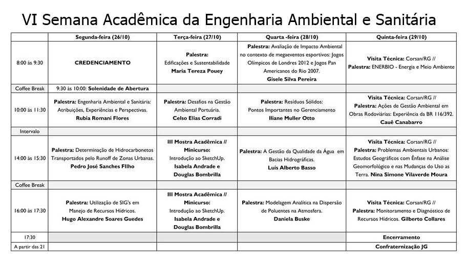 Obs.: Só será permitida a entrada gratuita até a 1h para os inscritos na VI Semana Acadêmica do curso de Engenharia Ambiental e Sanitária.