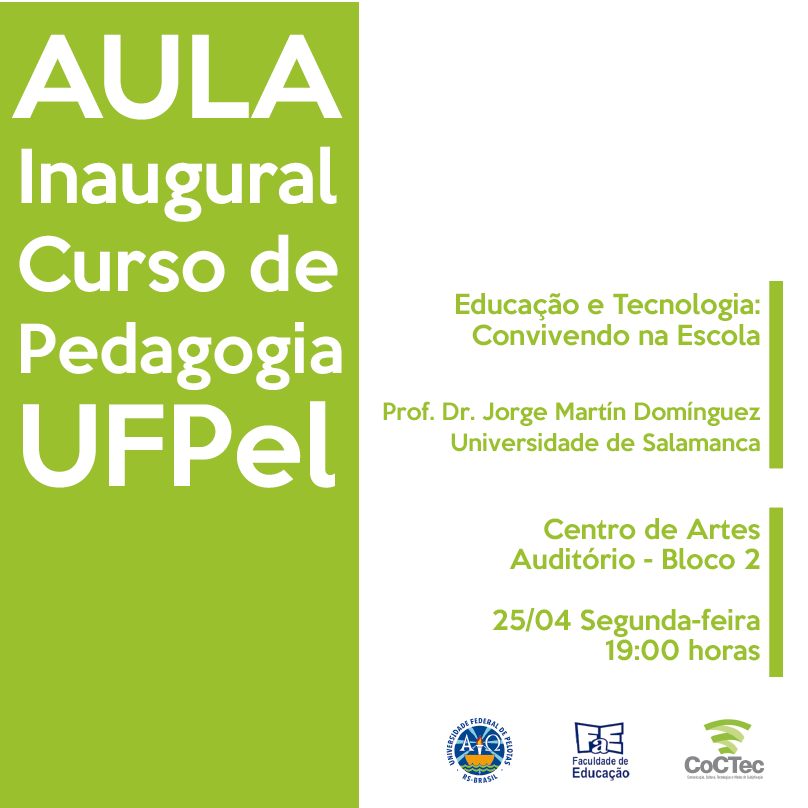 Convidamos a todos os professores, alunos do Curso de Pedagogia Diurno e Noturno e demais interessados para participarem da AULA INAUGURAL com o Prof. Dr. Jorge Martín Domínguez da Universidade de Salamanca – Espanha . Conversaremos sobre o tema “Educação e Tecnologias: convivendo na escola”.