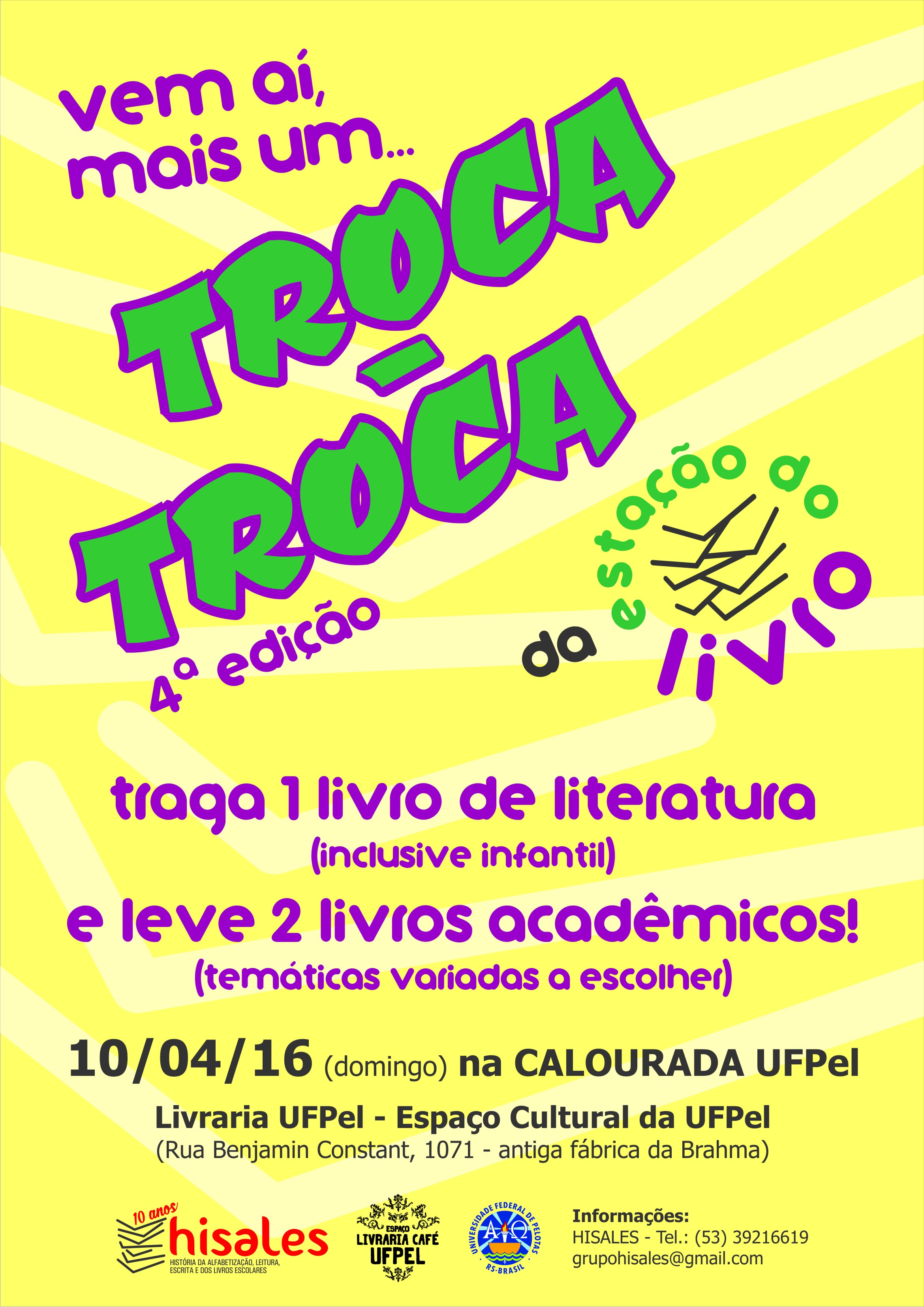 O Grupo de Pesquisa “História da Alfabetização, Leitura, Escrita e dos Livros Escolares – HISALES”, vinculado à FaE/PPGE/UFPel, convida vocês para o