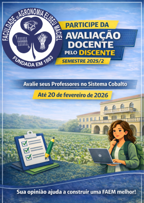 A Faculdade de Agronomia Eliseu Maciel (FAEM) reforça a importância da participação dos estudantes na Avaliação de Desempenho do Docente pelo Discente, referente ao semestre letivo 2025/2, promovida pela Comissão Própria de Avaliação (CPA) da Universidade Federal de Pelotas.