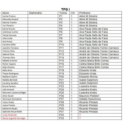 ATENÇÃO ALUNOS QUE FARÃO TFG I E II NO PRÓXIMO SEMESTRE: