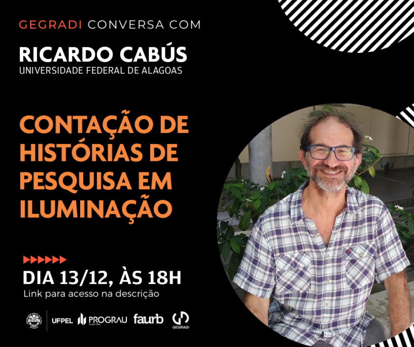 Notícias GEGRADI conversa com Ricardo Cabús Publicado por rogerbraga em 10/12/2021 Leia também → Notícias 12º Seminário Internacional Projetar Notícias Podcast Café com Extensão Notícias Professora Lisandra Krebs recebe reconhecimento em comemoração ao dia internacional de mulheres e meninas na ciência A conversa será sobre “Contação de histórias de pesquisa em iluminação”. Na segunda, dia 13/12 às 18h. Link para acesso: https://youtu.be/Q5zKHudbrac Compartilhe: Clique para compartilhar no Facebook(abre em nova janela) Facebook Clique para compartilhar no WhatsApp(abre em nova janela) WhatsApp Relacionado Comments comments rogerbraga Leia também → Notícias 12º Seminário Internacional Projetar Notícias Podcast Café com Extensão Notícias Professora Lisandra Krebs recebe reconhecimento em comemoração ao dia internacional de mulheres e meninas na ciência
