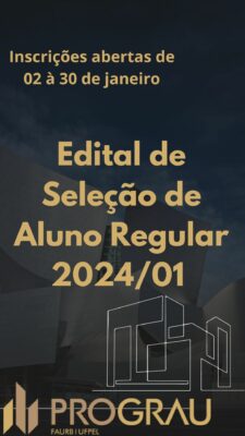 As inscrições para seleção de alunos regulares do PROGRAU estarão abertas de 02 à 30 de janeiro de 2024.