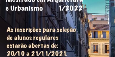 Publicado edital de seleção para aluno regular do Mestrado em Arquitetura e Urbanismo